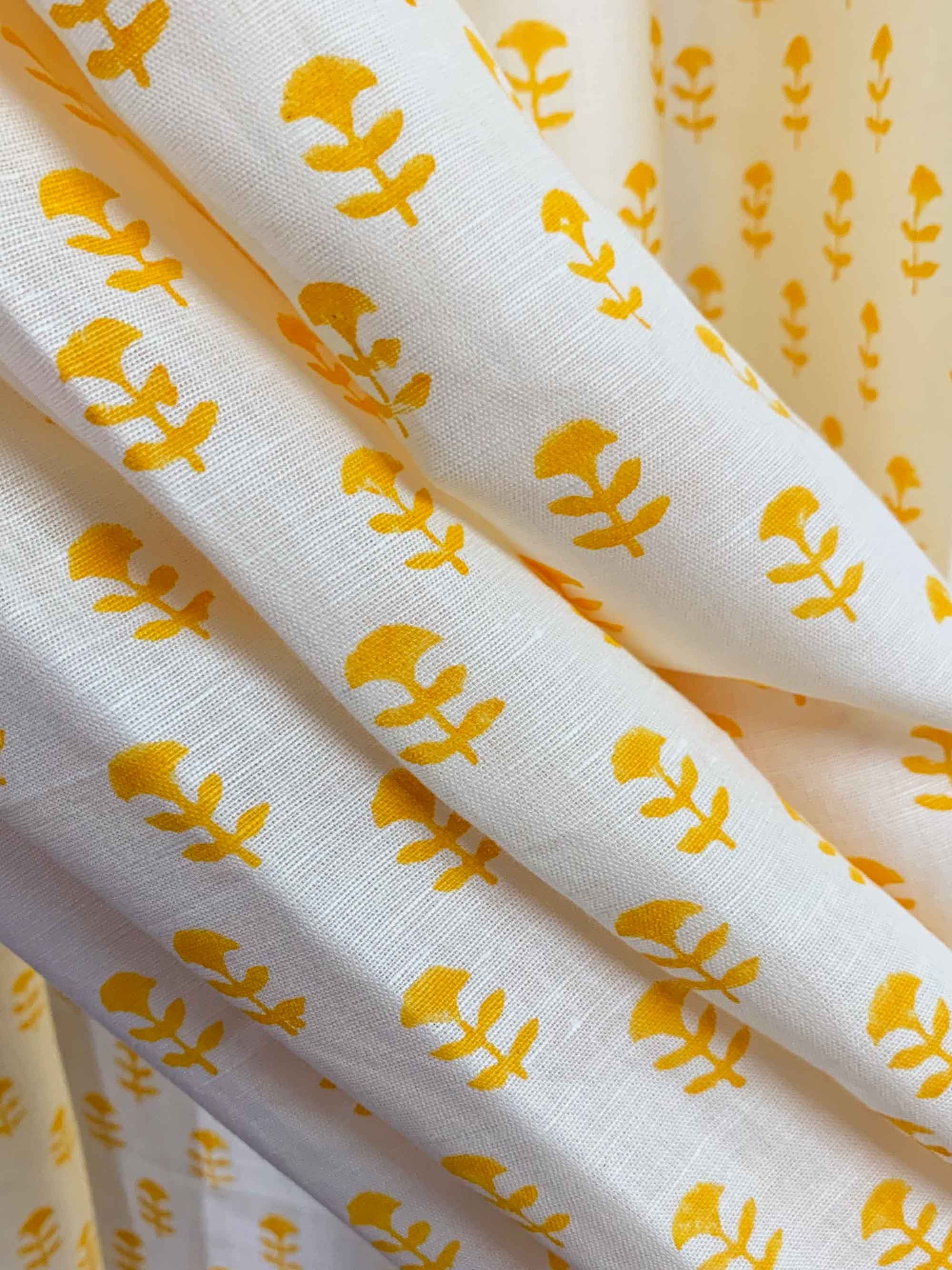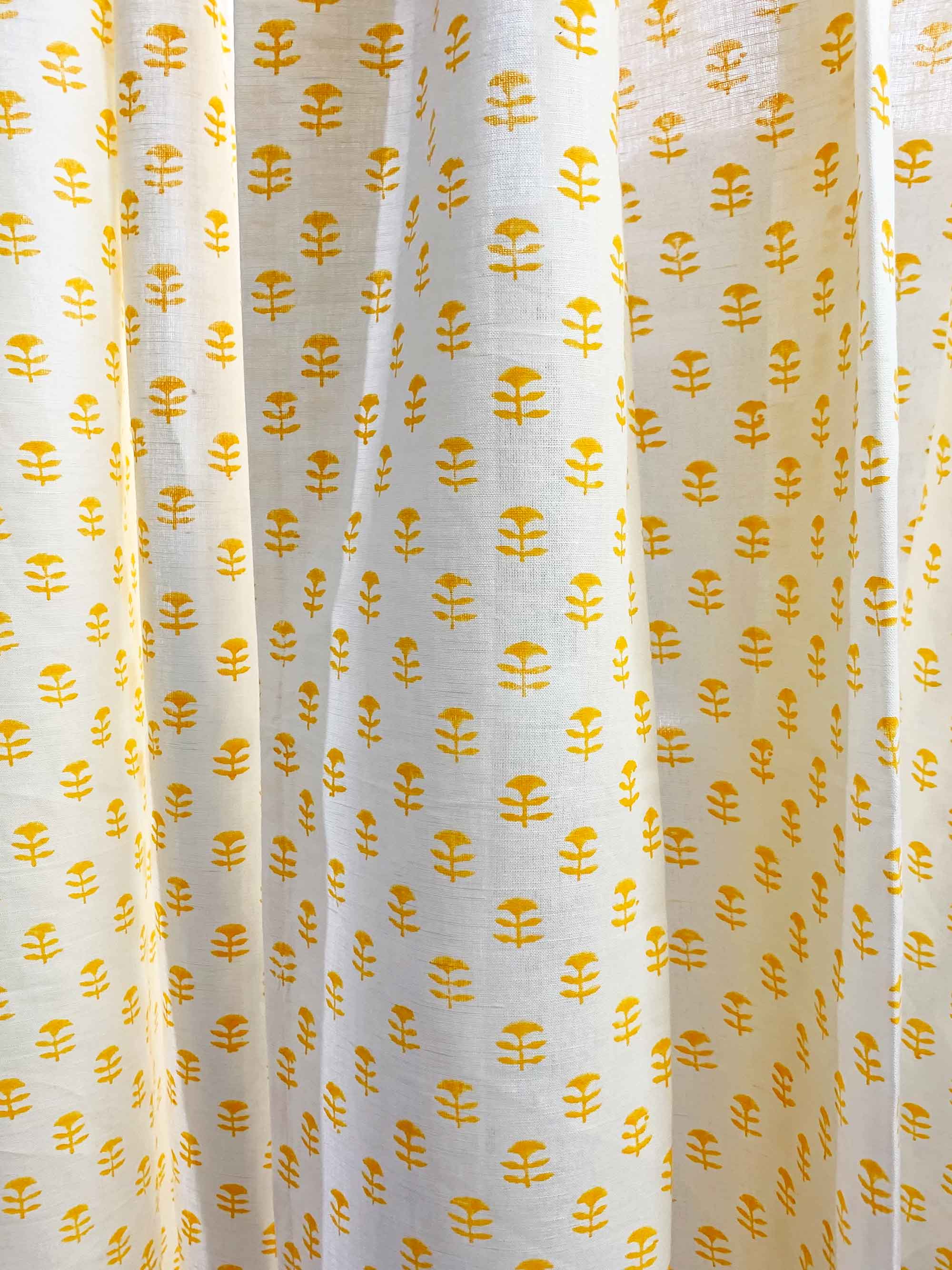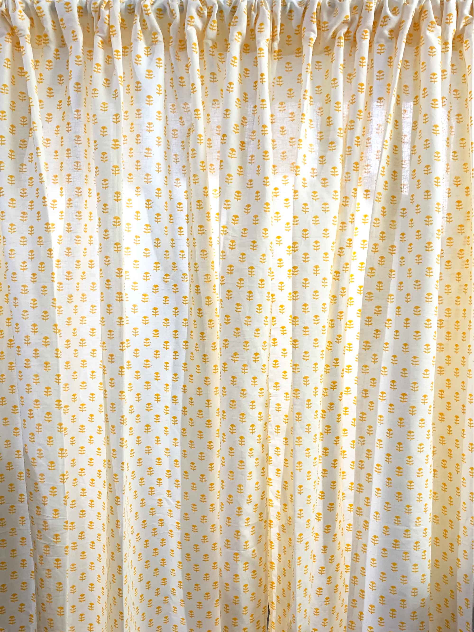 Cream Yellow Tiny Flower Hand Block Printed Cotton Curtains