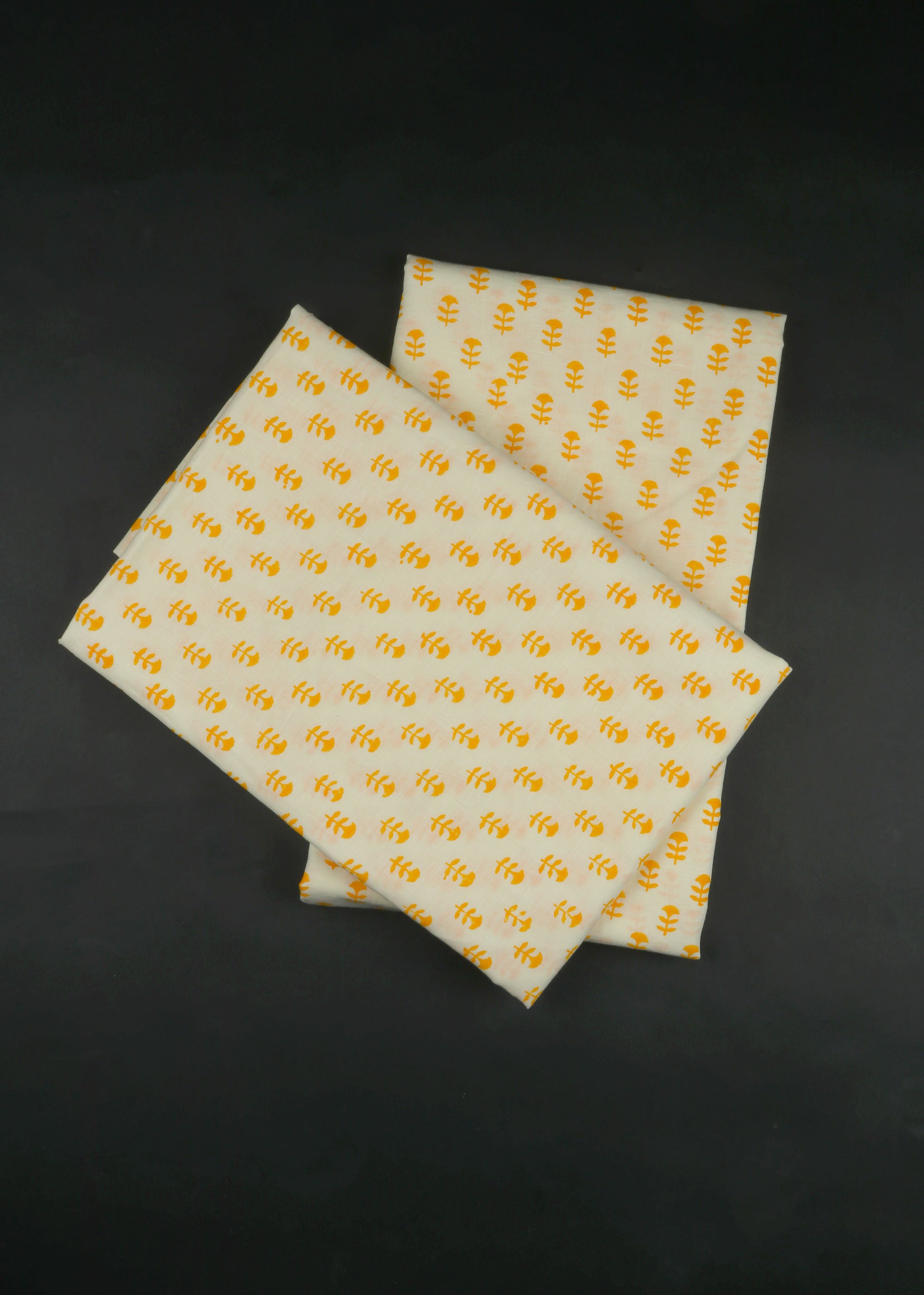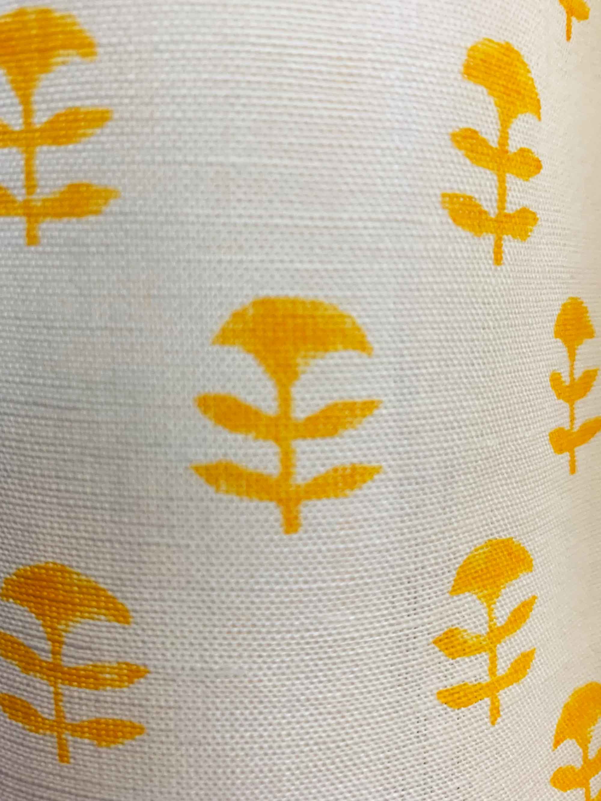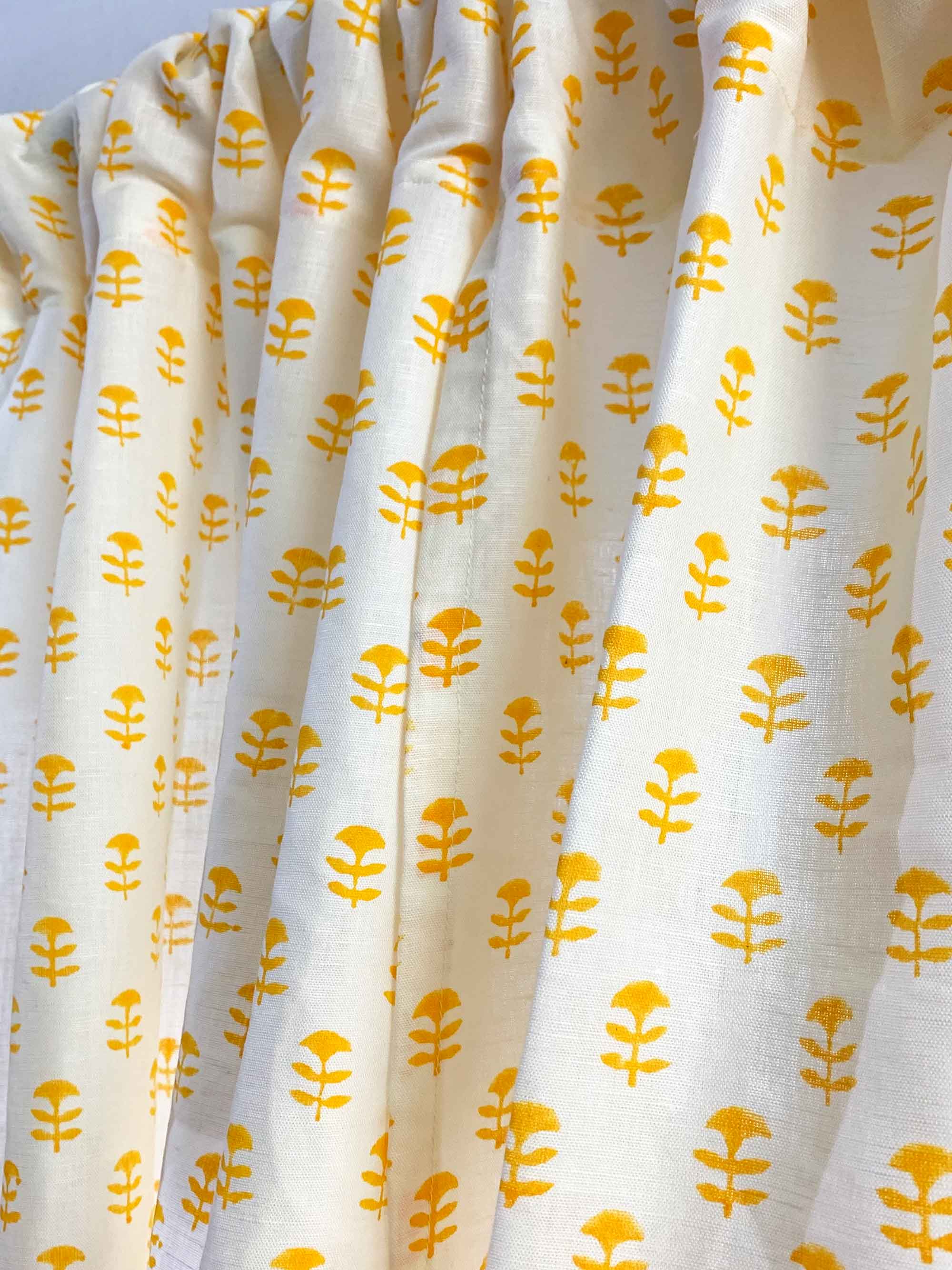 Cream Yellow Tiny Flower Hand Block Printed Cotton Curtains
