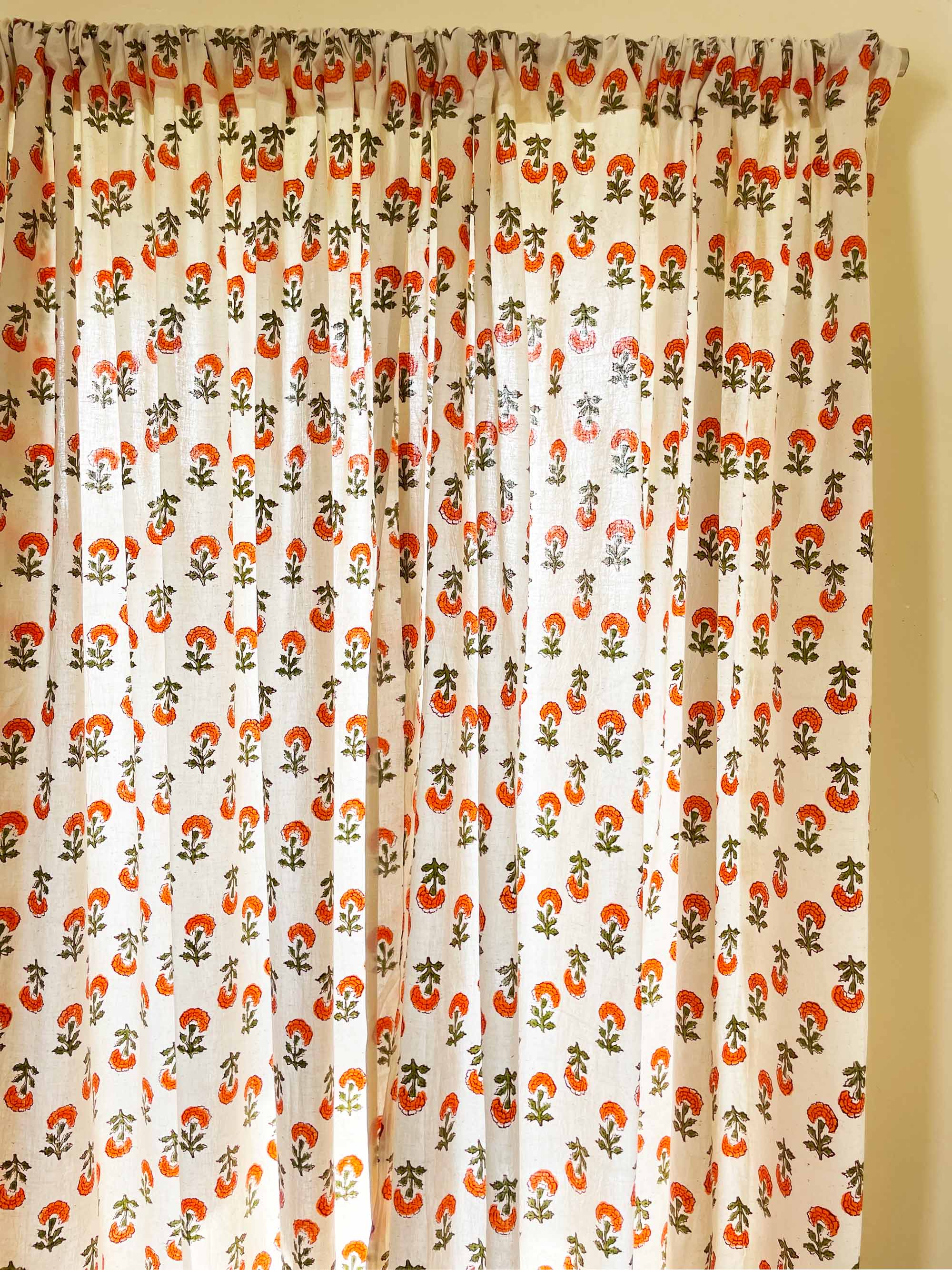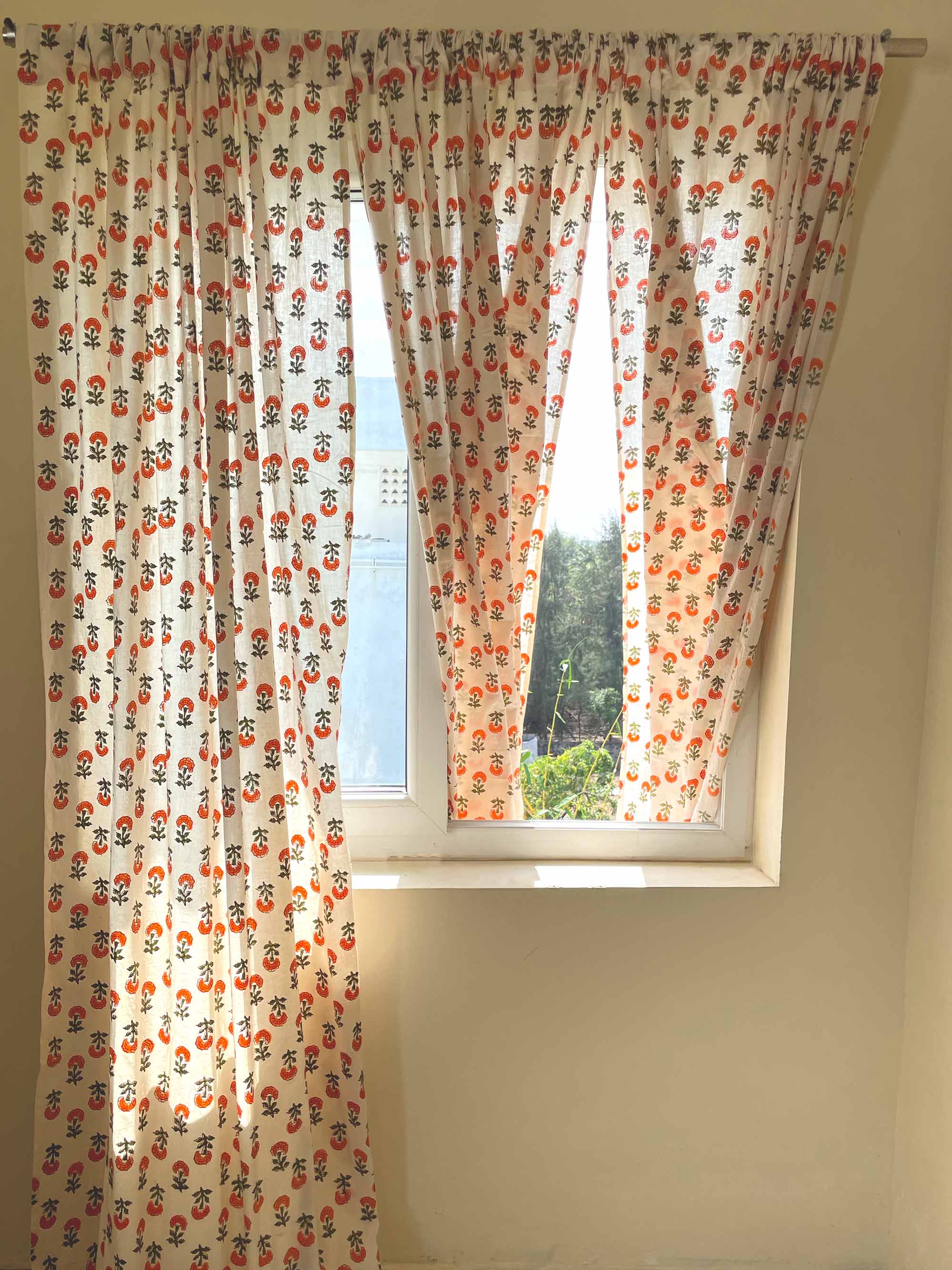 Set of two hand block printed cotton curtain panels. There are various length options available. Please select appropriate size from the dropdown.