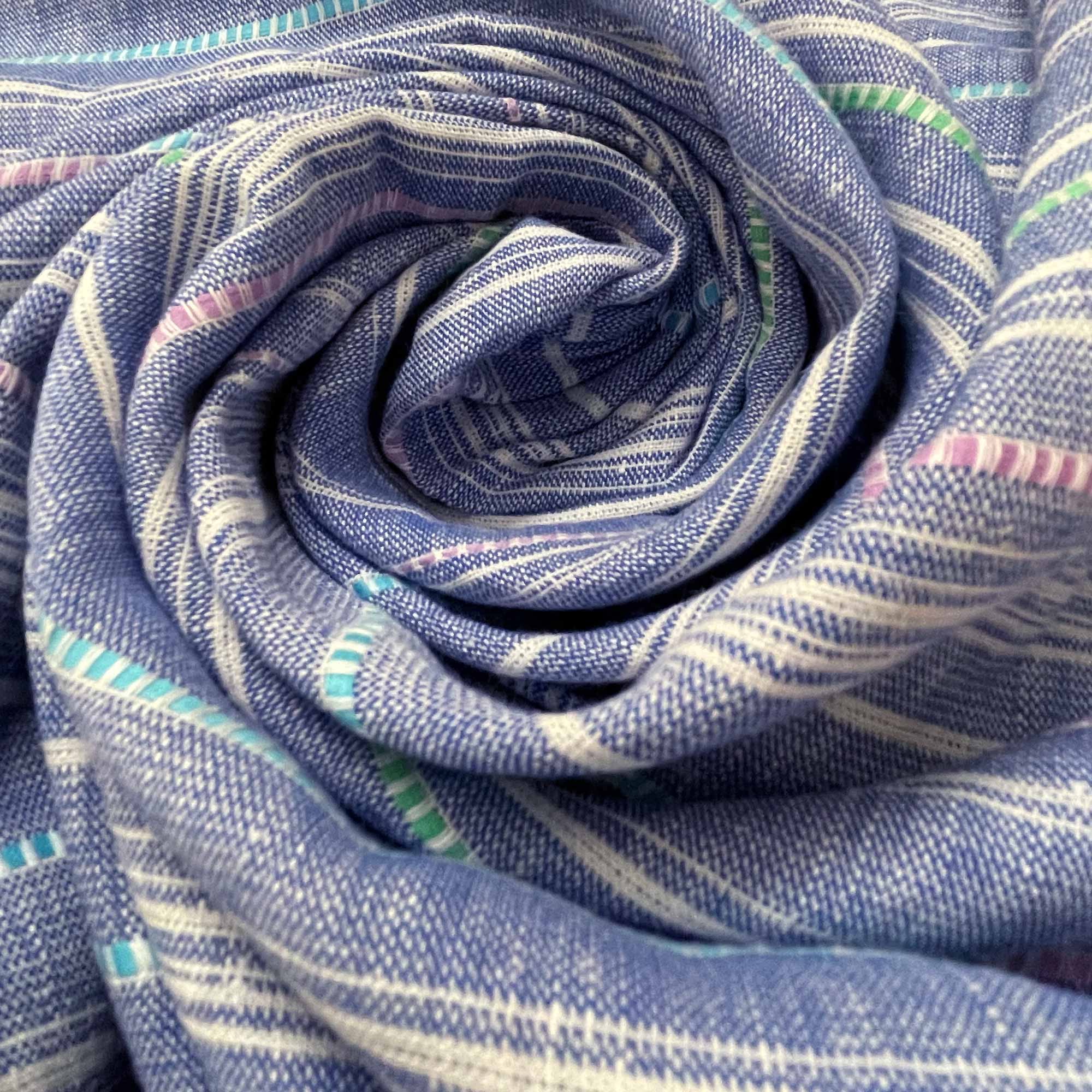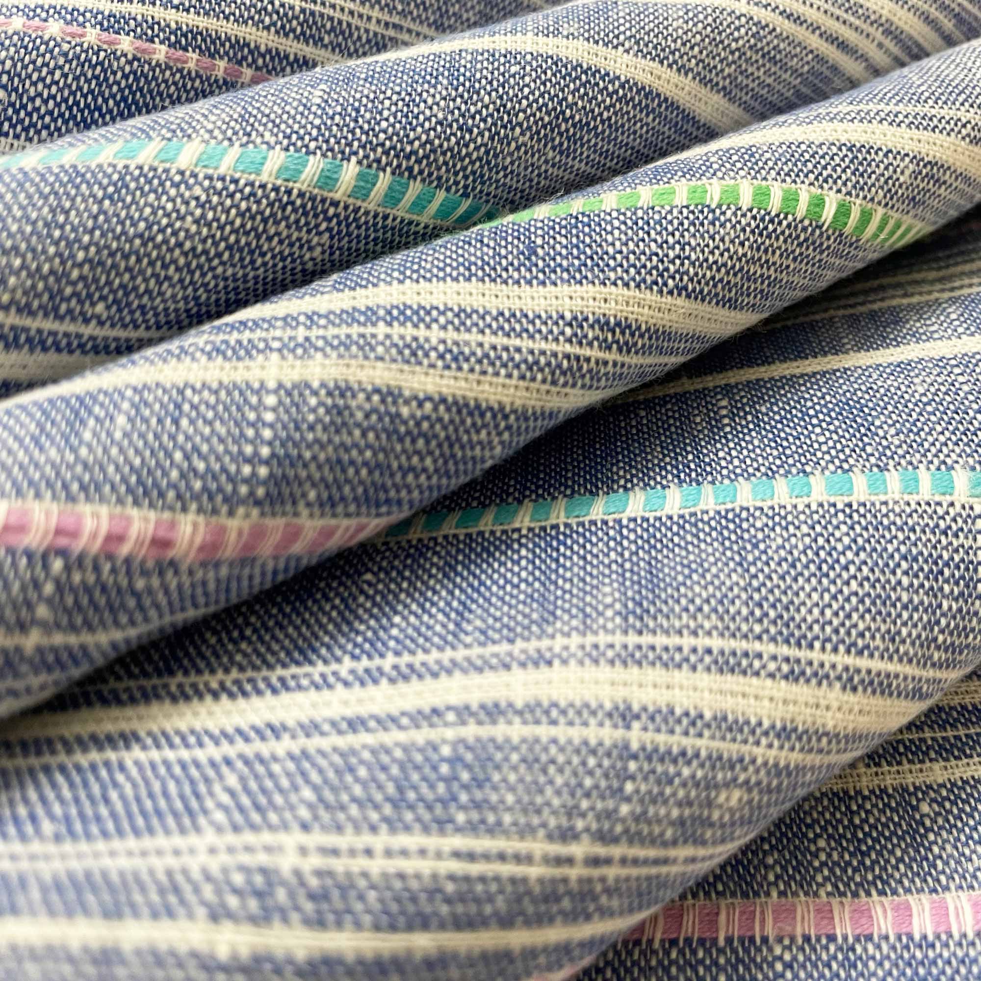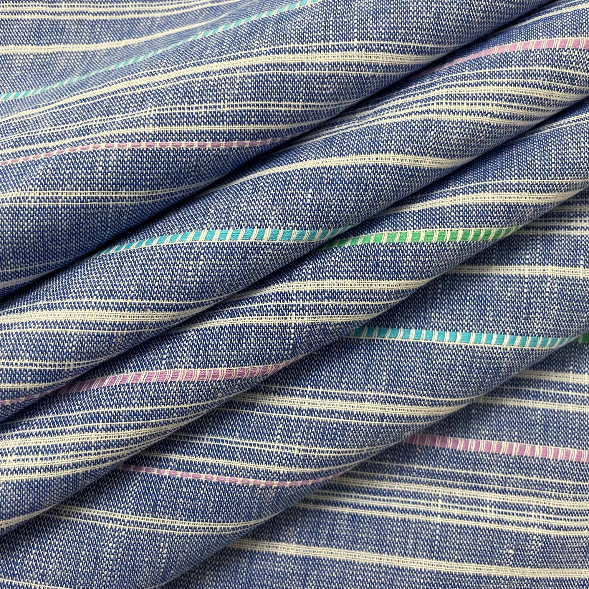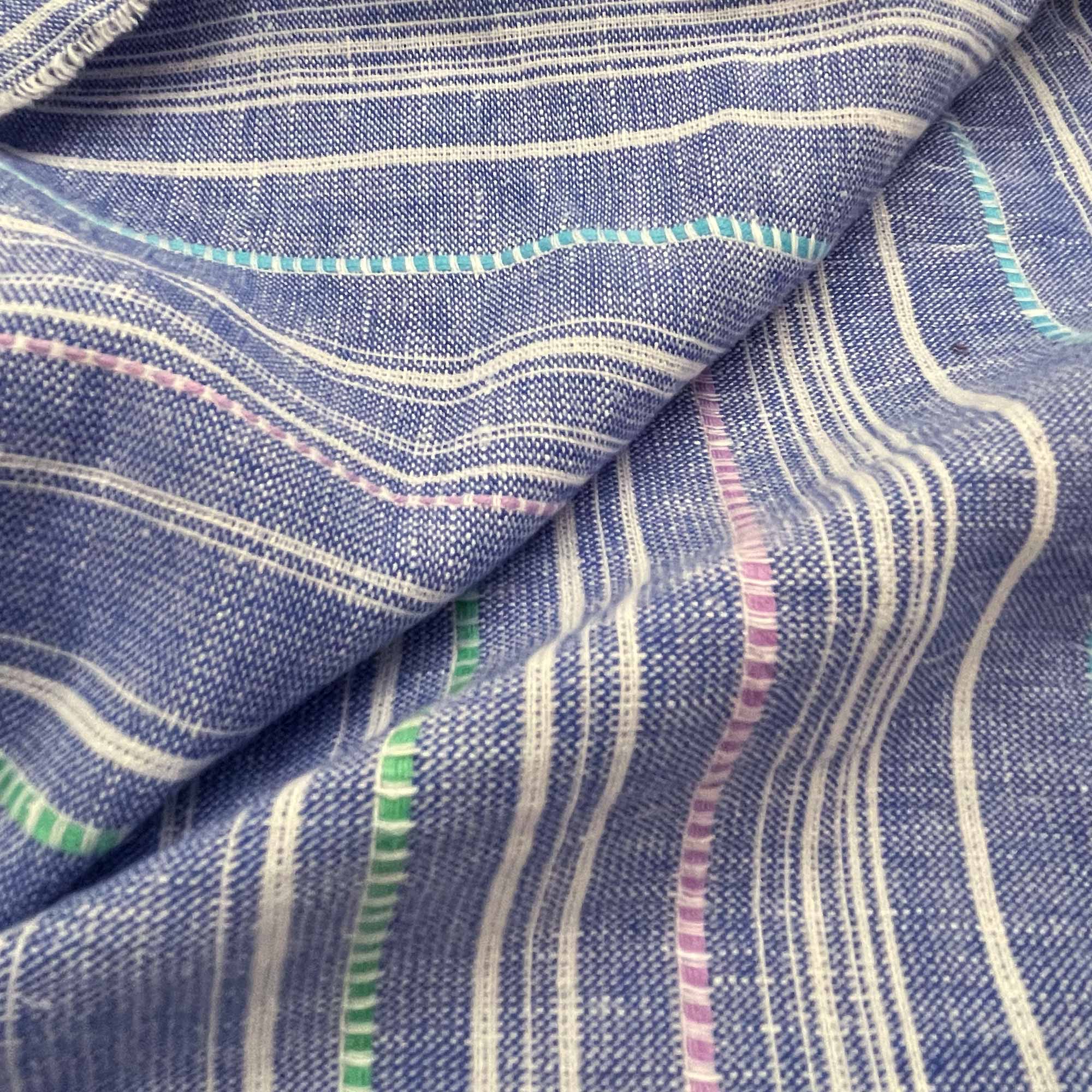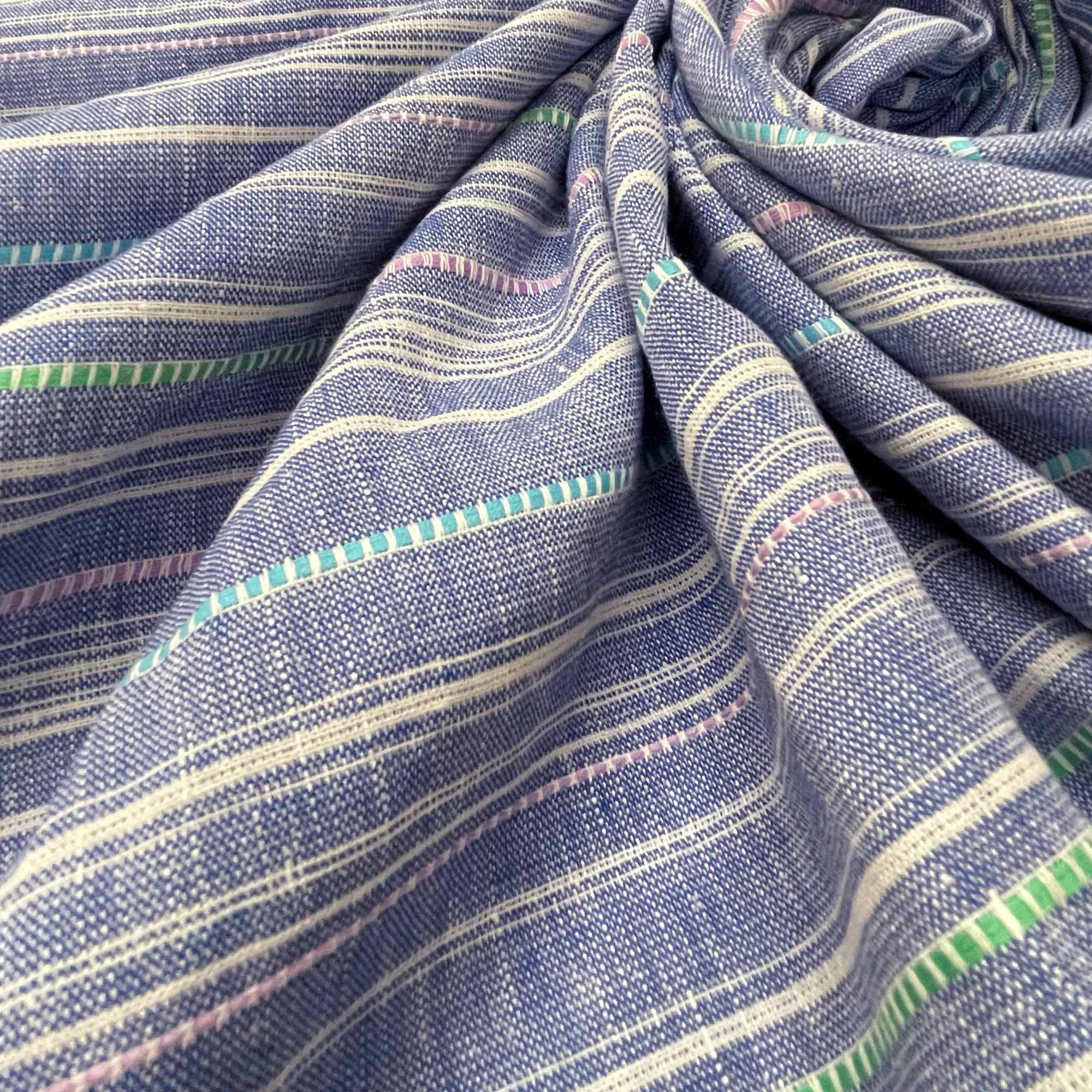 Woven stripes linen fabric in Medium Blue. Very soft and a little stretchy in nature, this is a handloom woven linen fabric.