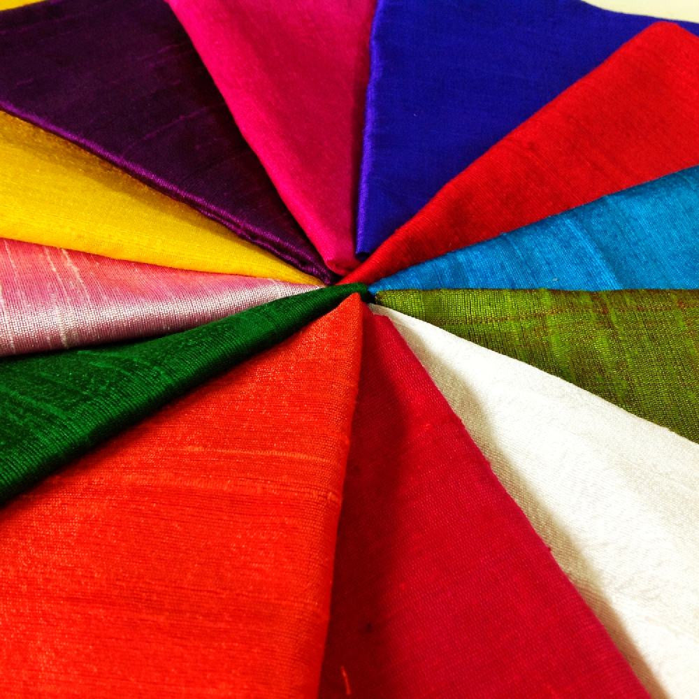 Crafters pack of 12 raw silk fat quarters. This is good quality dupioni or raw silk fabric bundle in 12 different colors. This is 100% pure silk dupioni obtained from Indian mulberry cocoon's silk yarn.