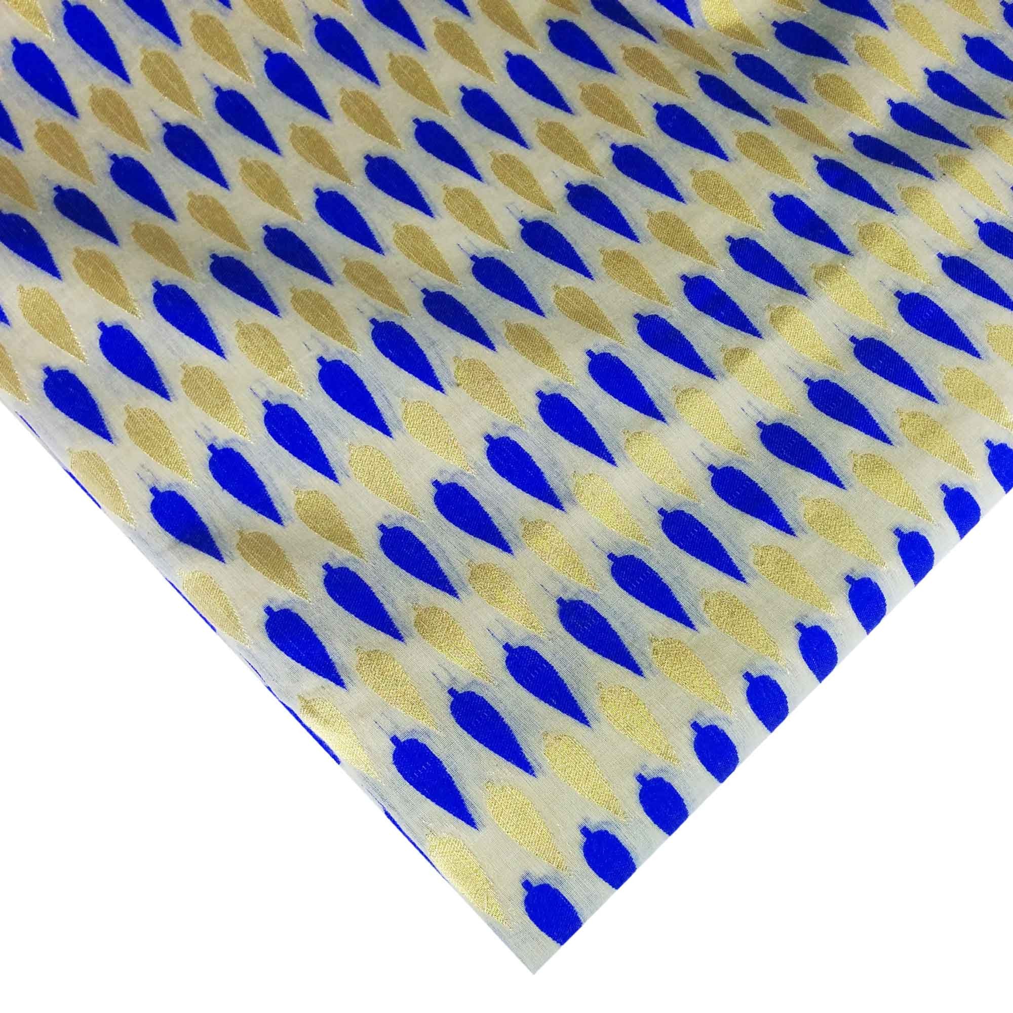 Royal Blue and Beige Gold Chanderi Silk Fabric