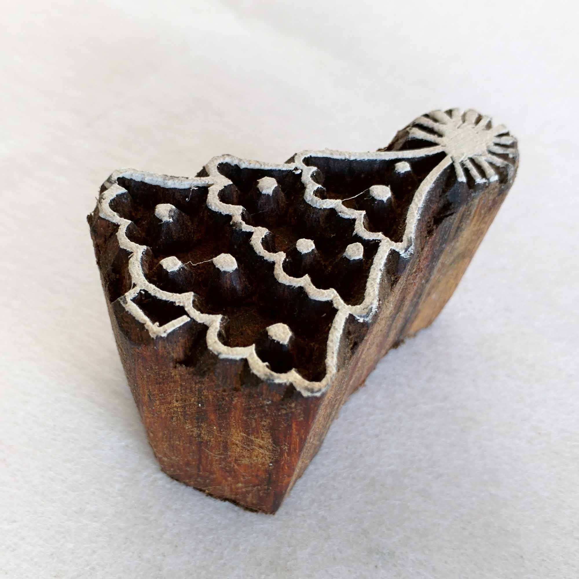This wood block is hand carved by an award winning master carver in India. The block is made using rosewood- the most expensive and the most durable wood used for stamp making.