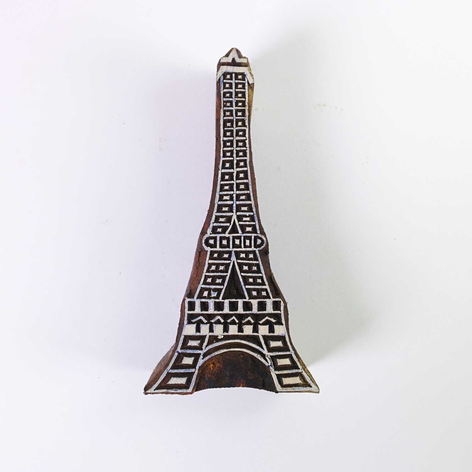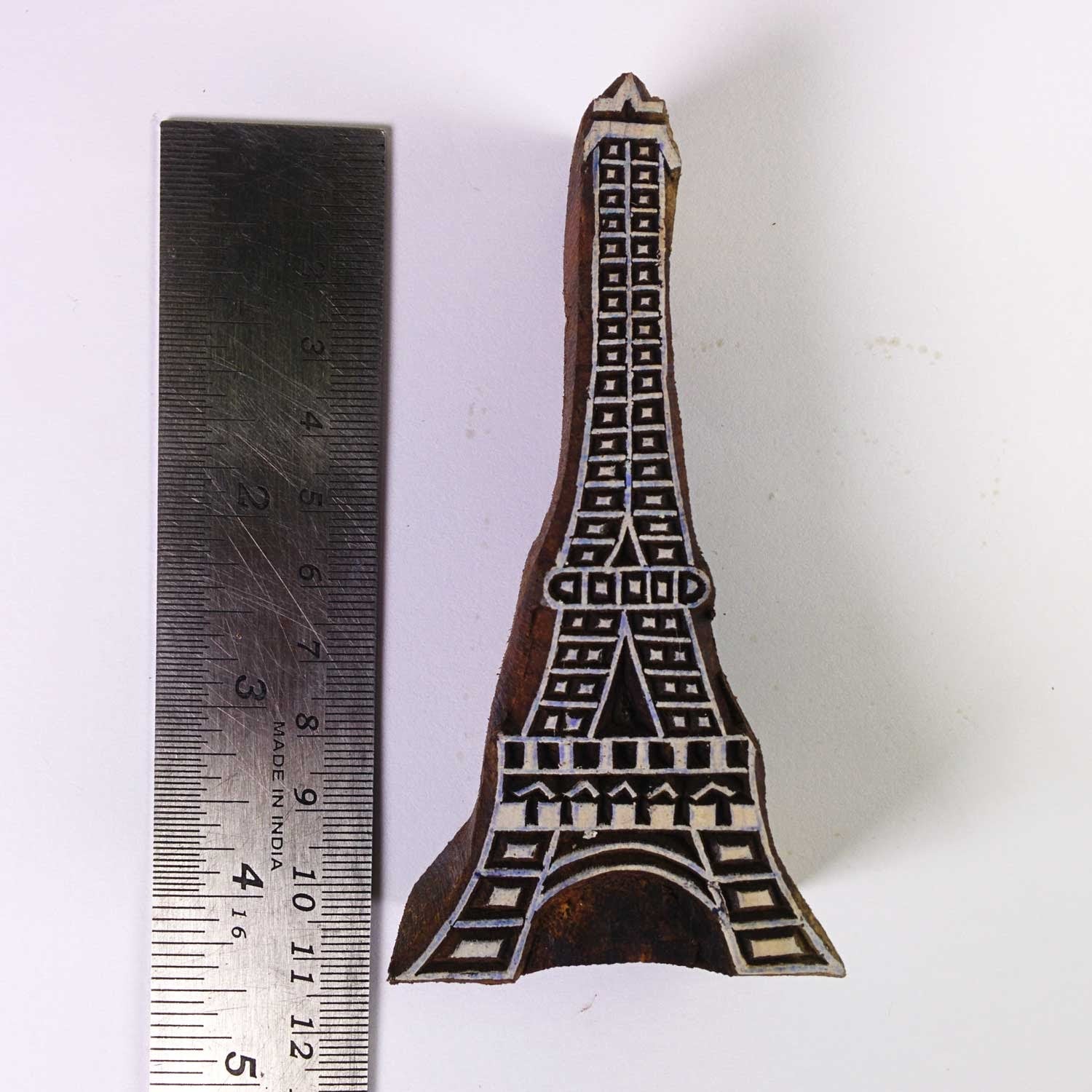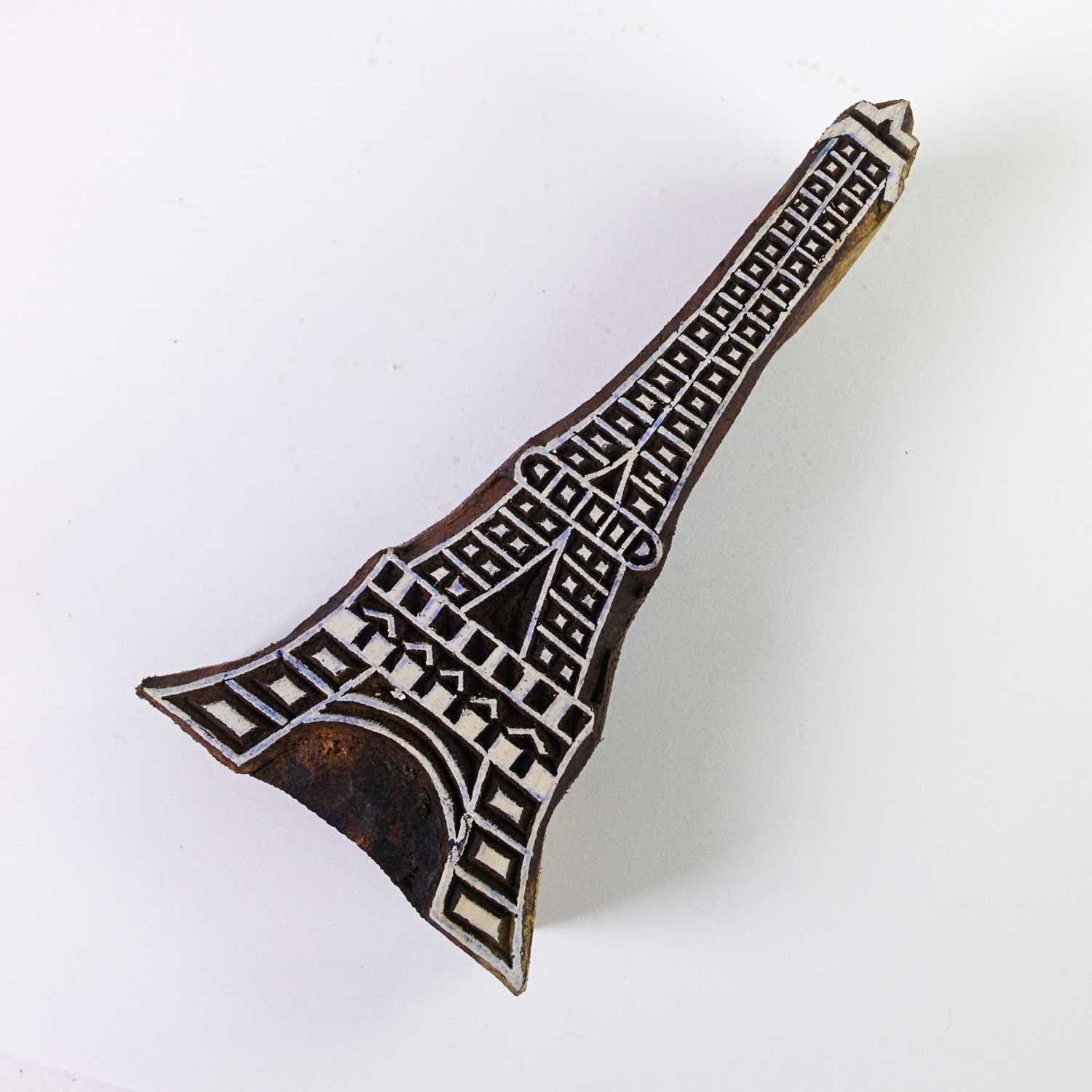 Wood block printing stamp - Eiffel Tower with intricate carving.
