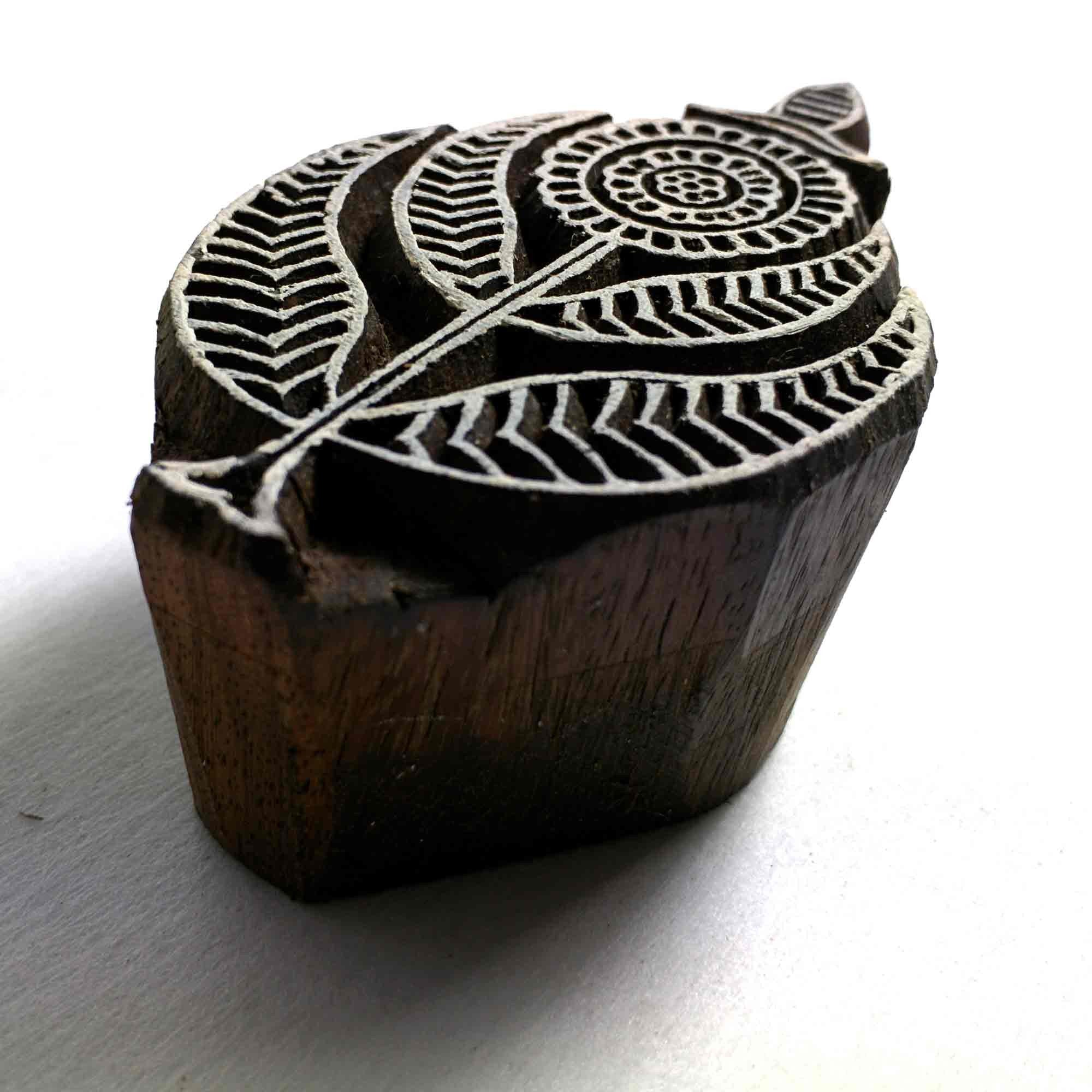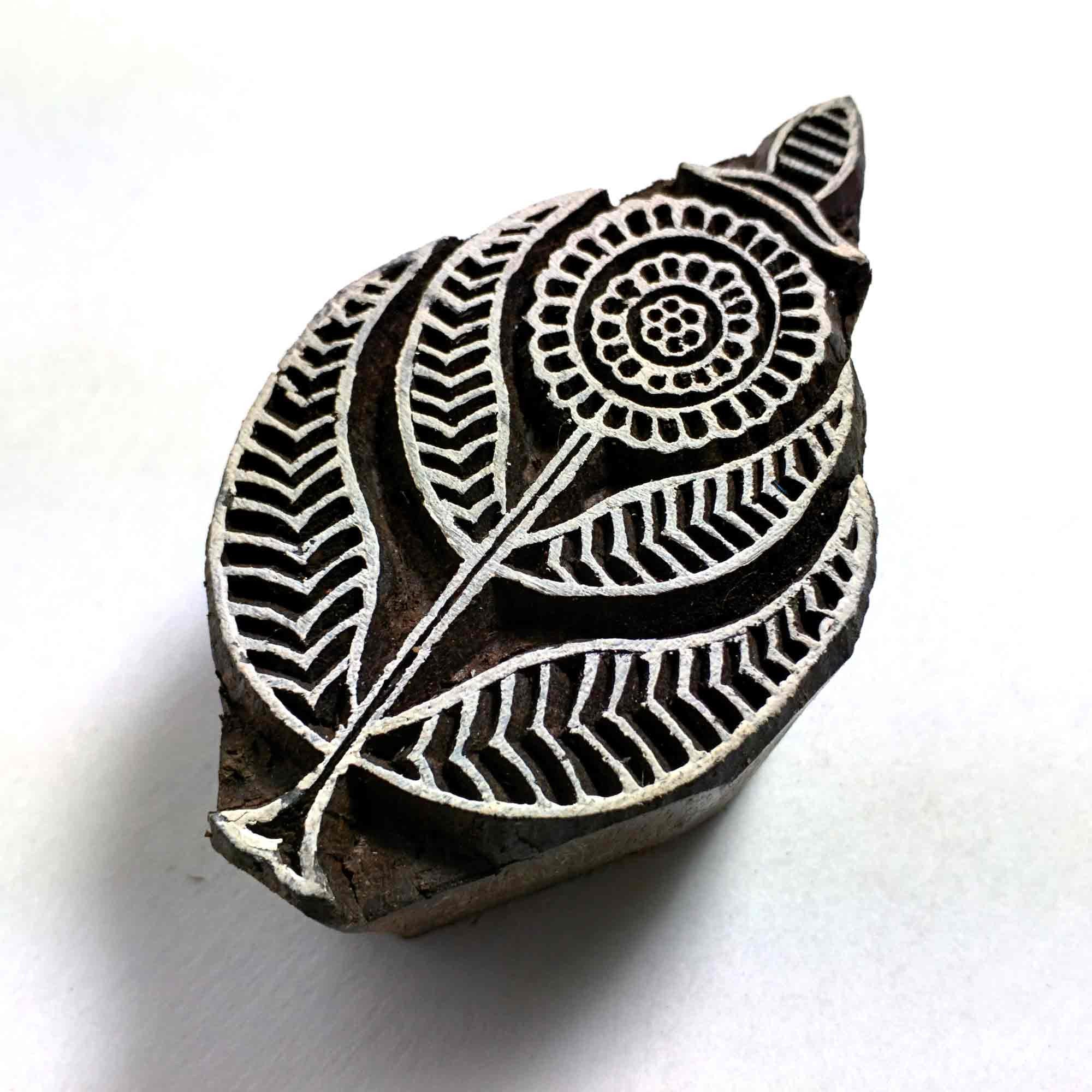Wood block printing stamp - Flower with intricate carving.