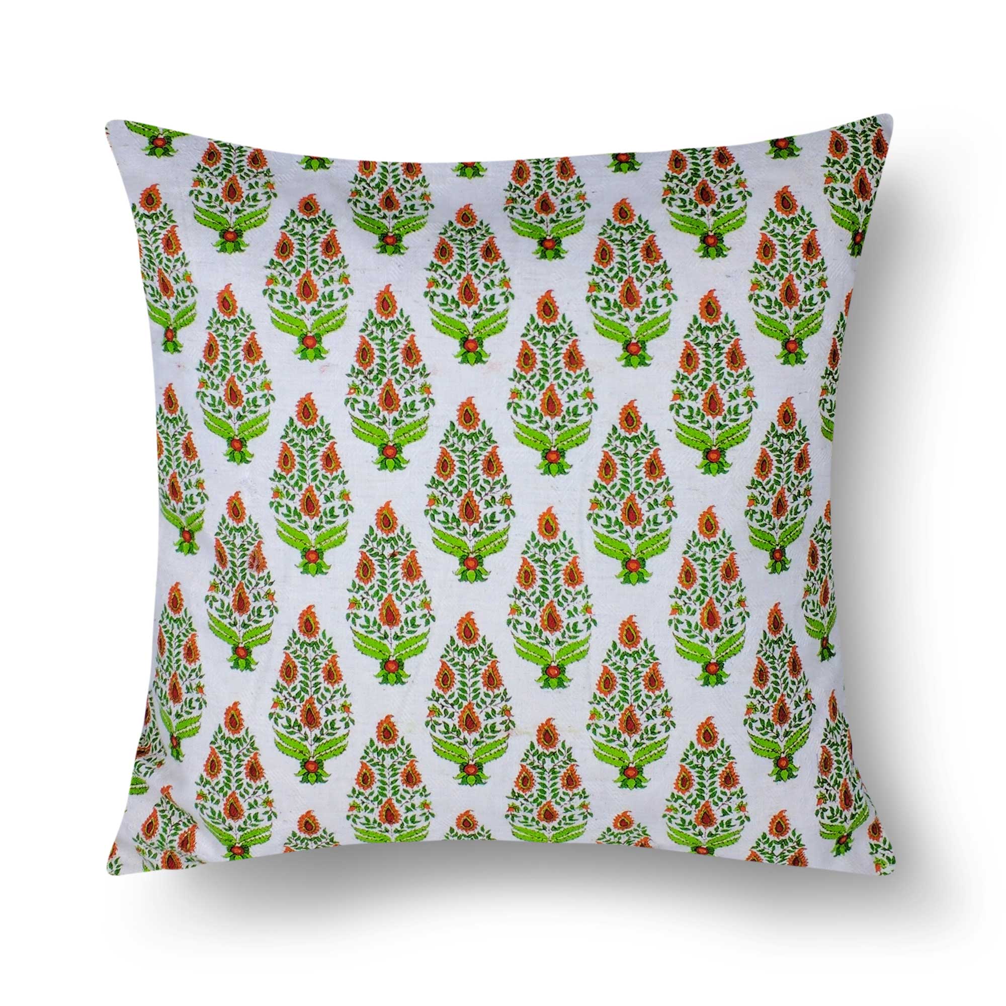 Green and cream tree pattern cotton cushion cover. 100% cotton pillow cover has a soft cotton lining that is well interlocked to avoid any fraying use-after-use.