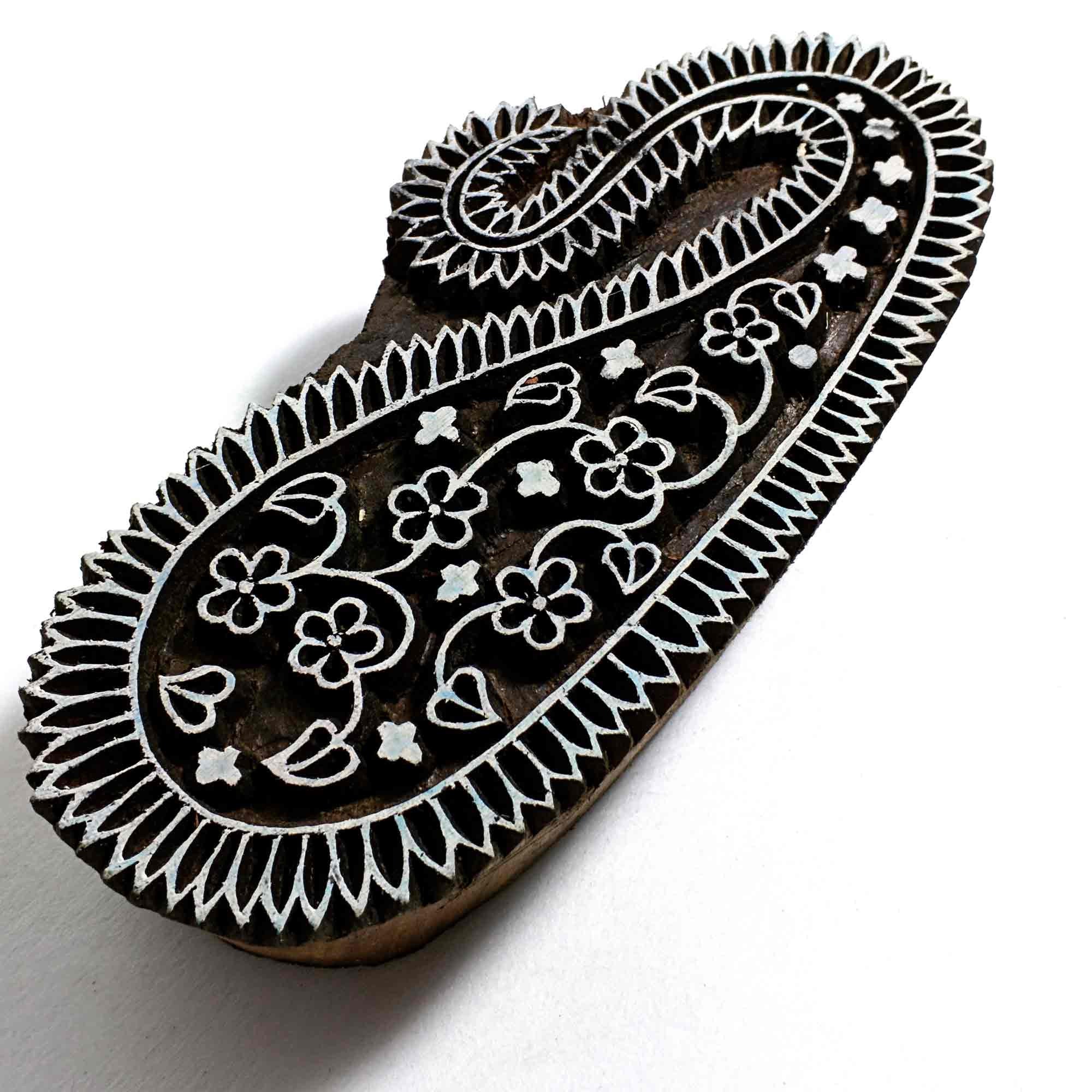 Wood block printing stamp - Jaipur Paisley with intricate carving.