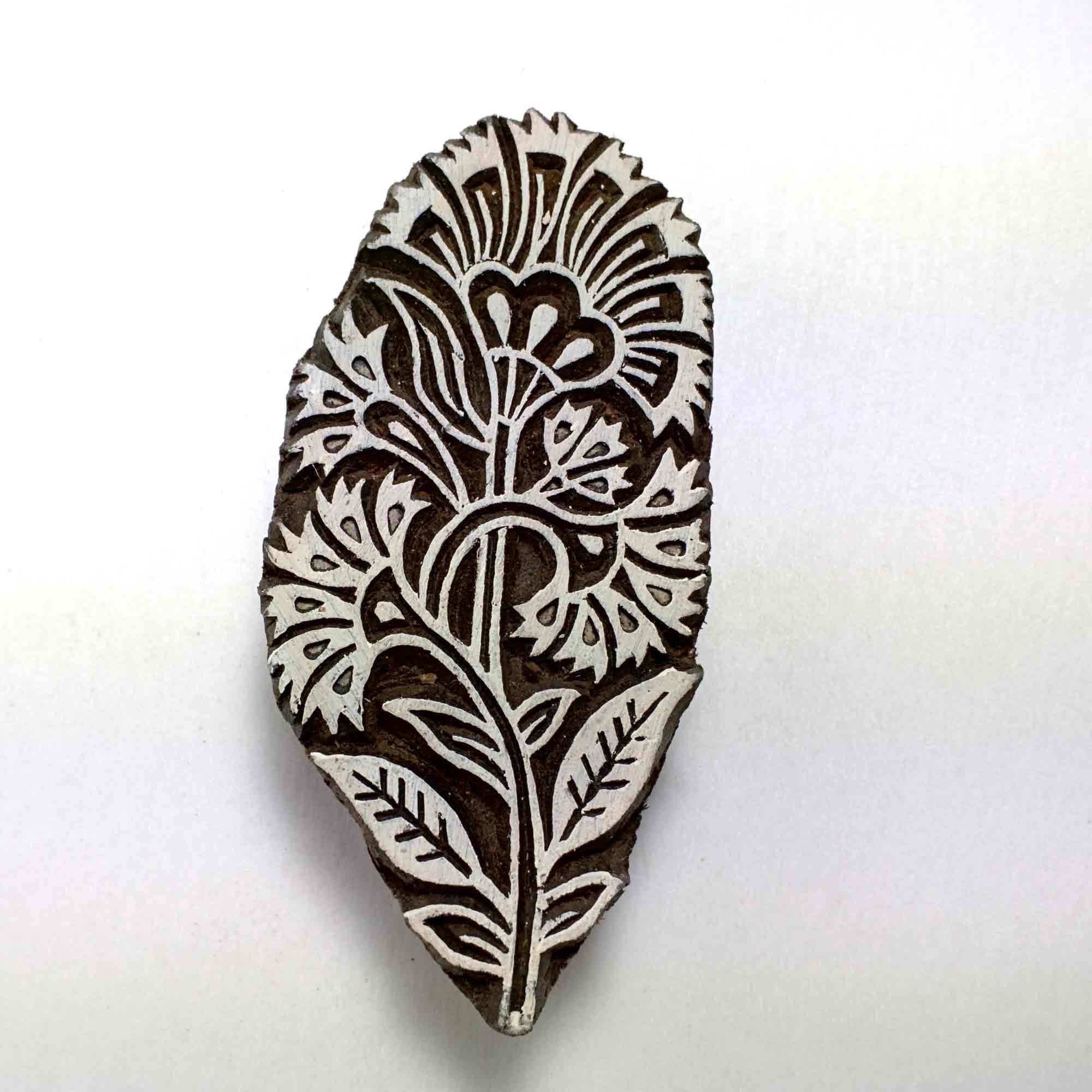 Wood block printing stamp - Kashmir flower with intricate carving.