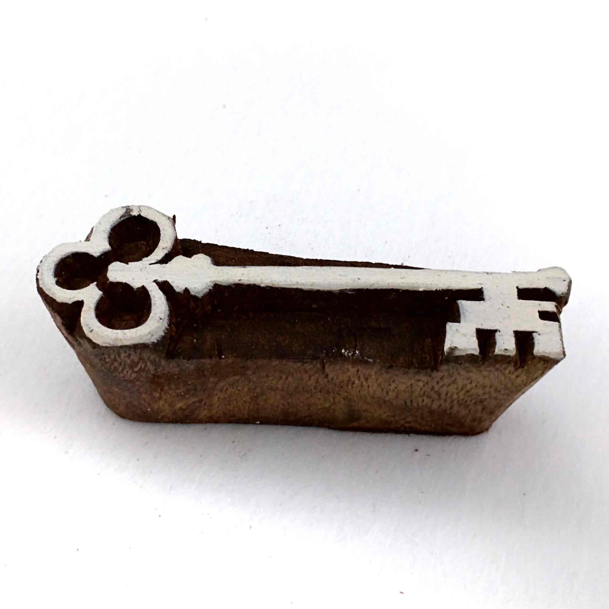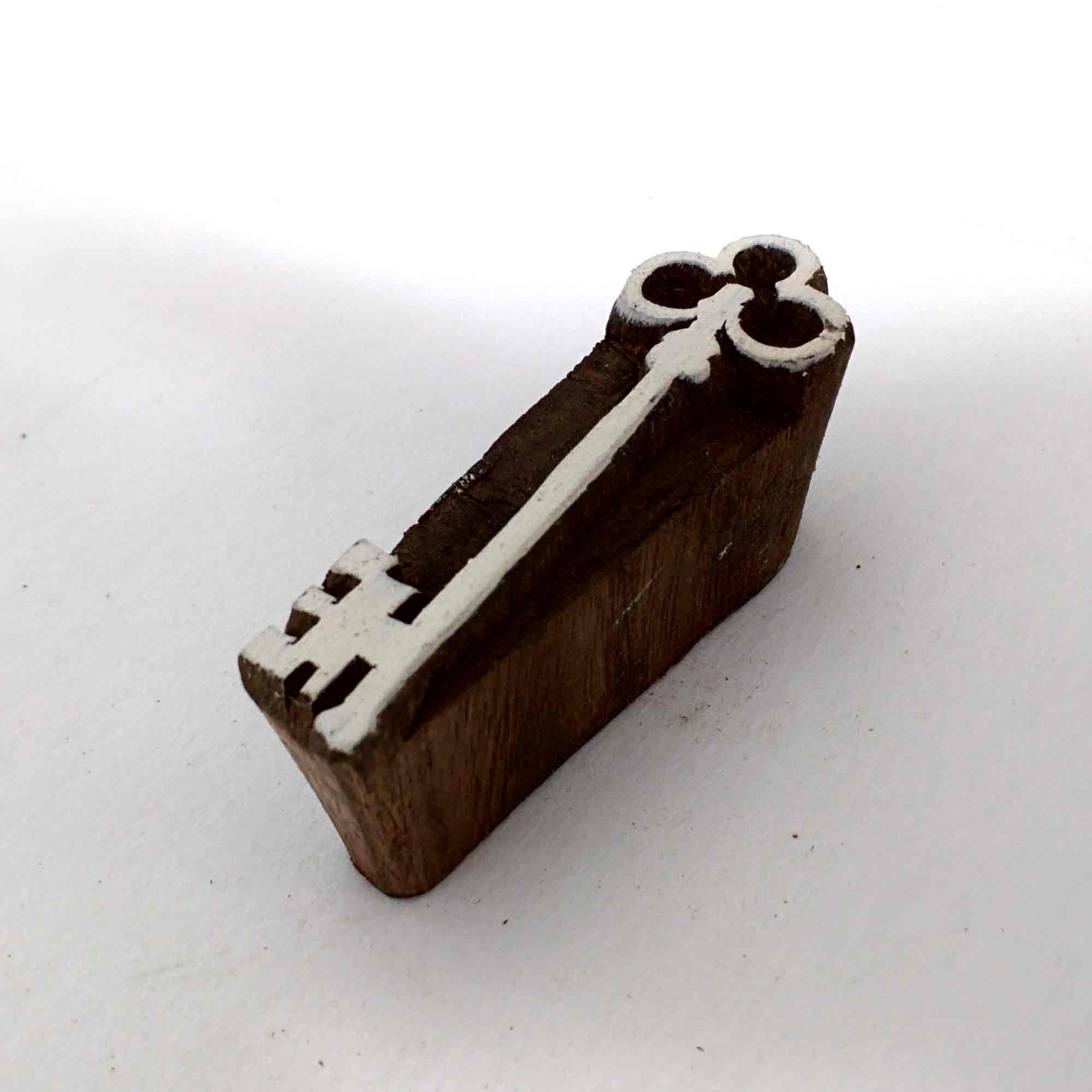 Wood block printing stamp - Key with carving.