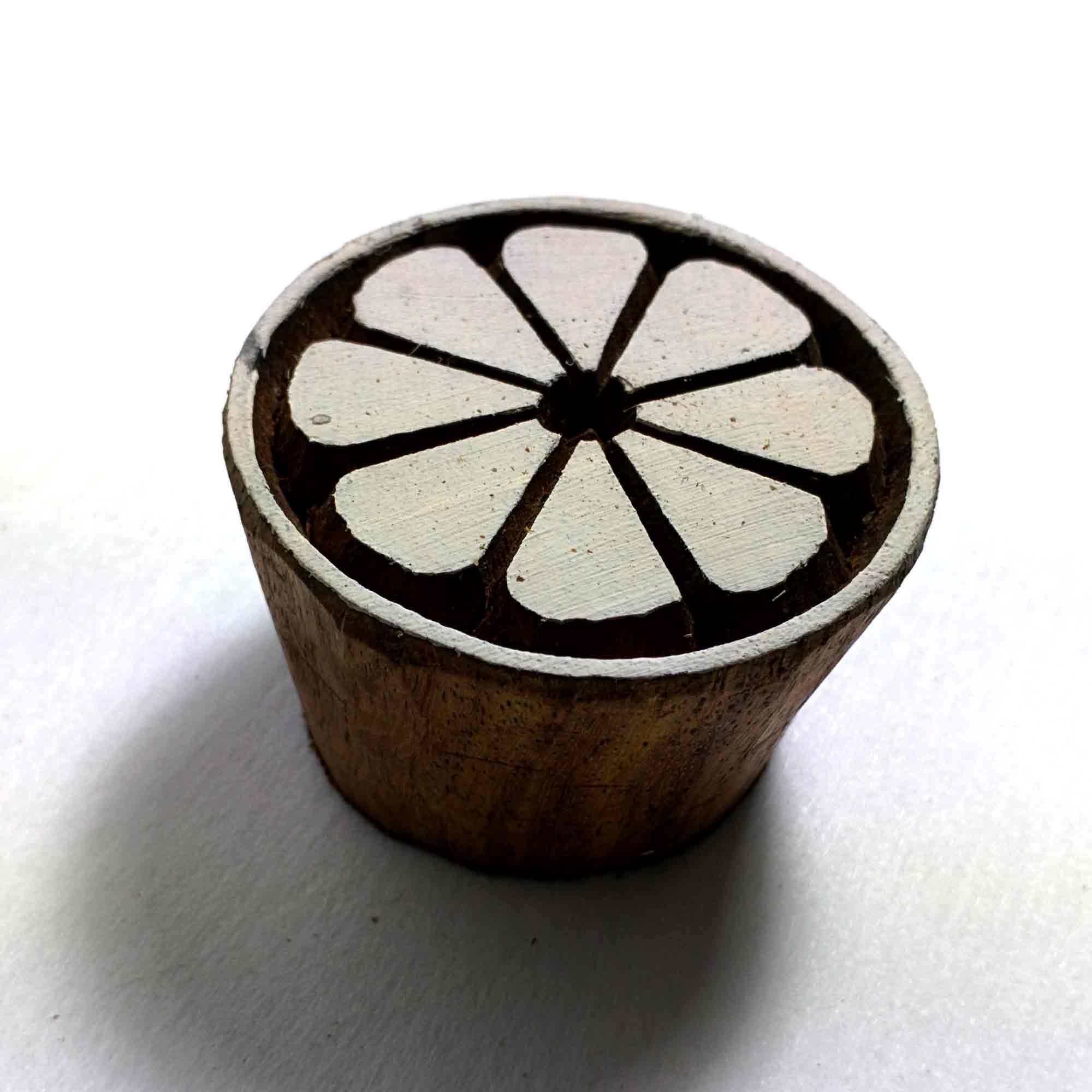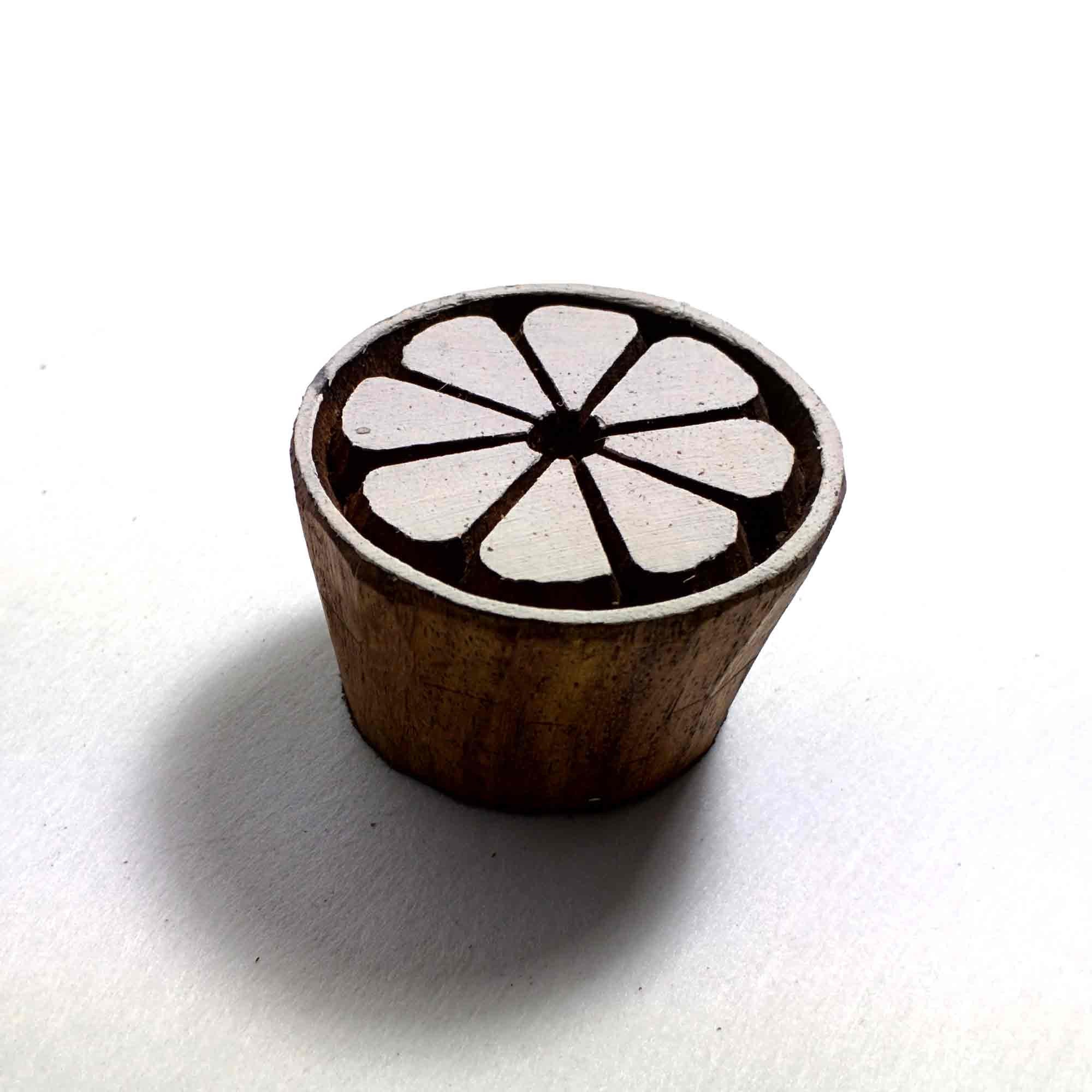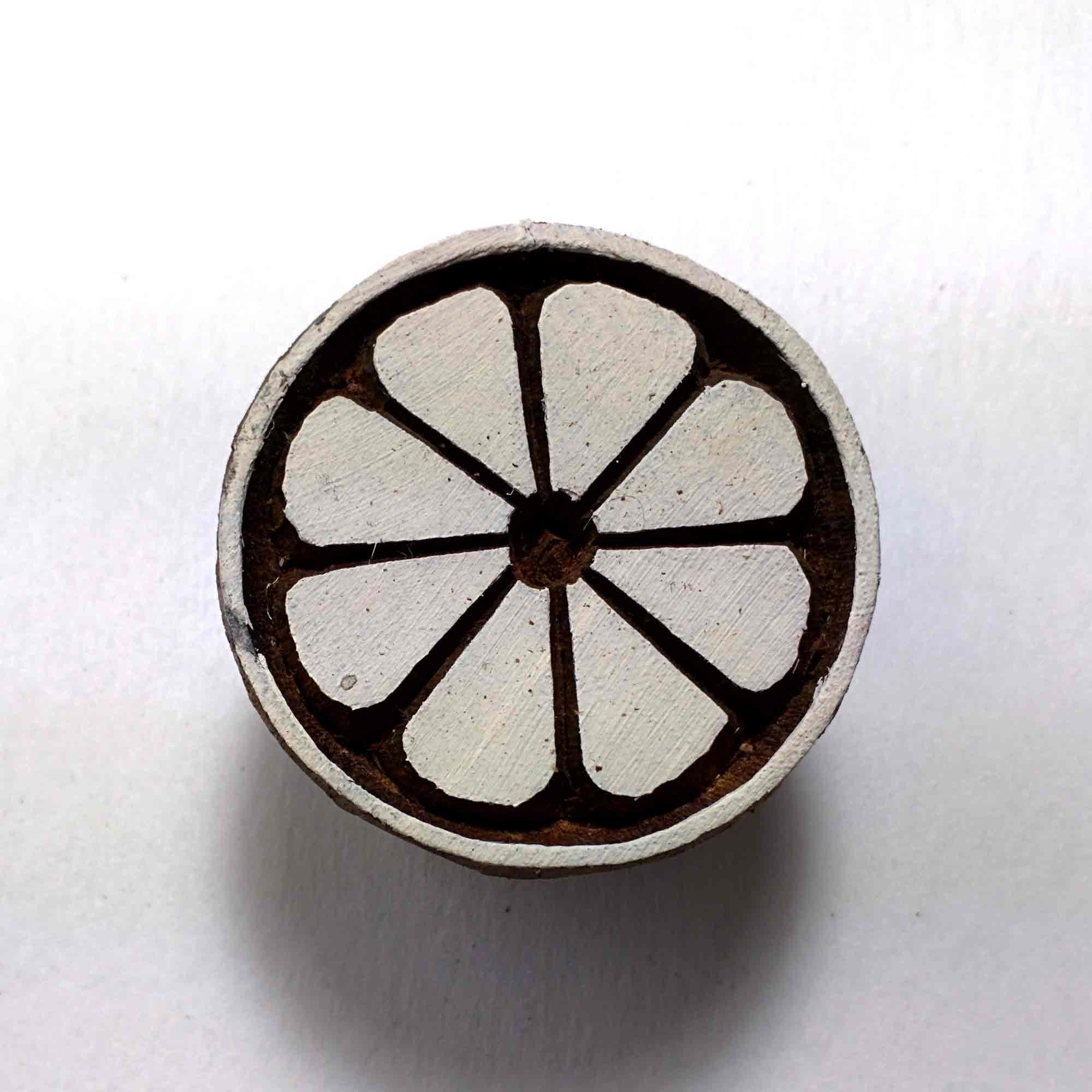 Wood block printing stamp - Half cut lemon with carving.