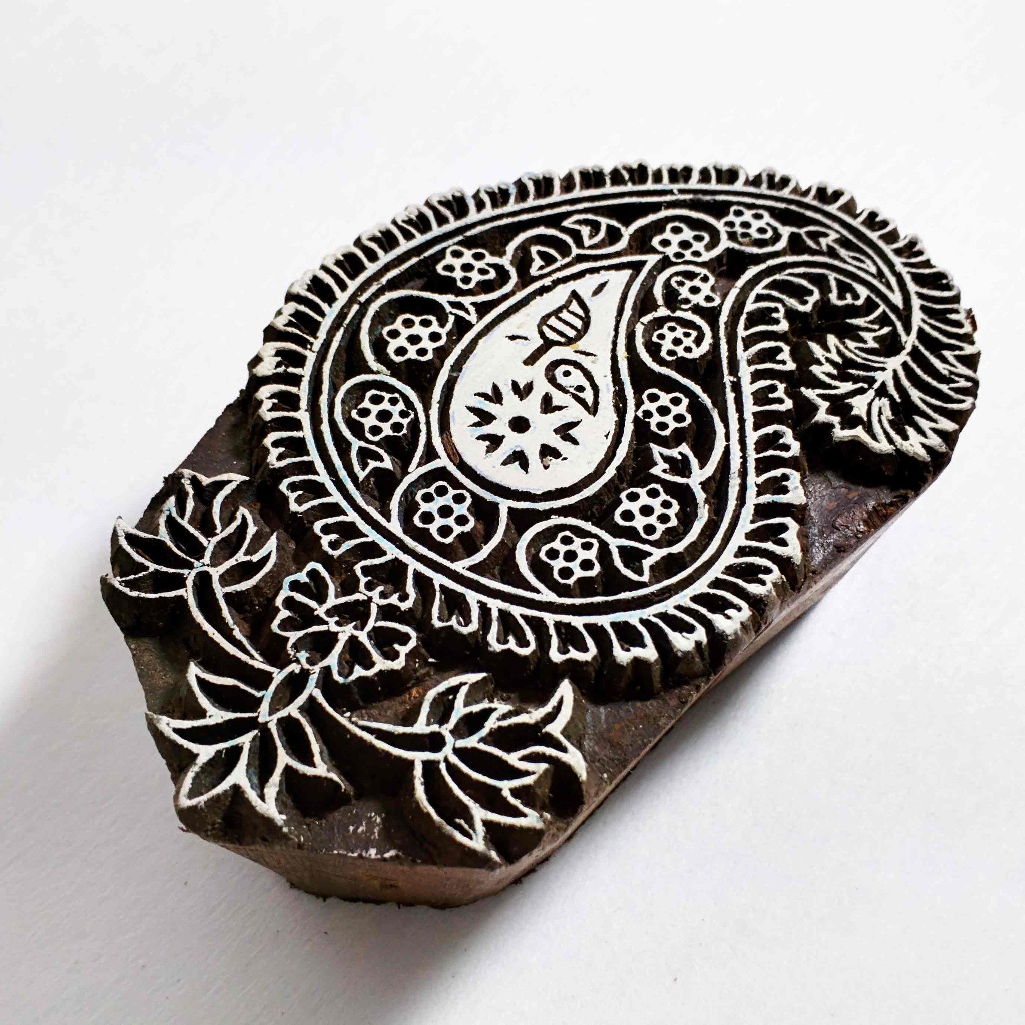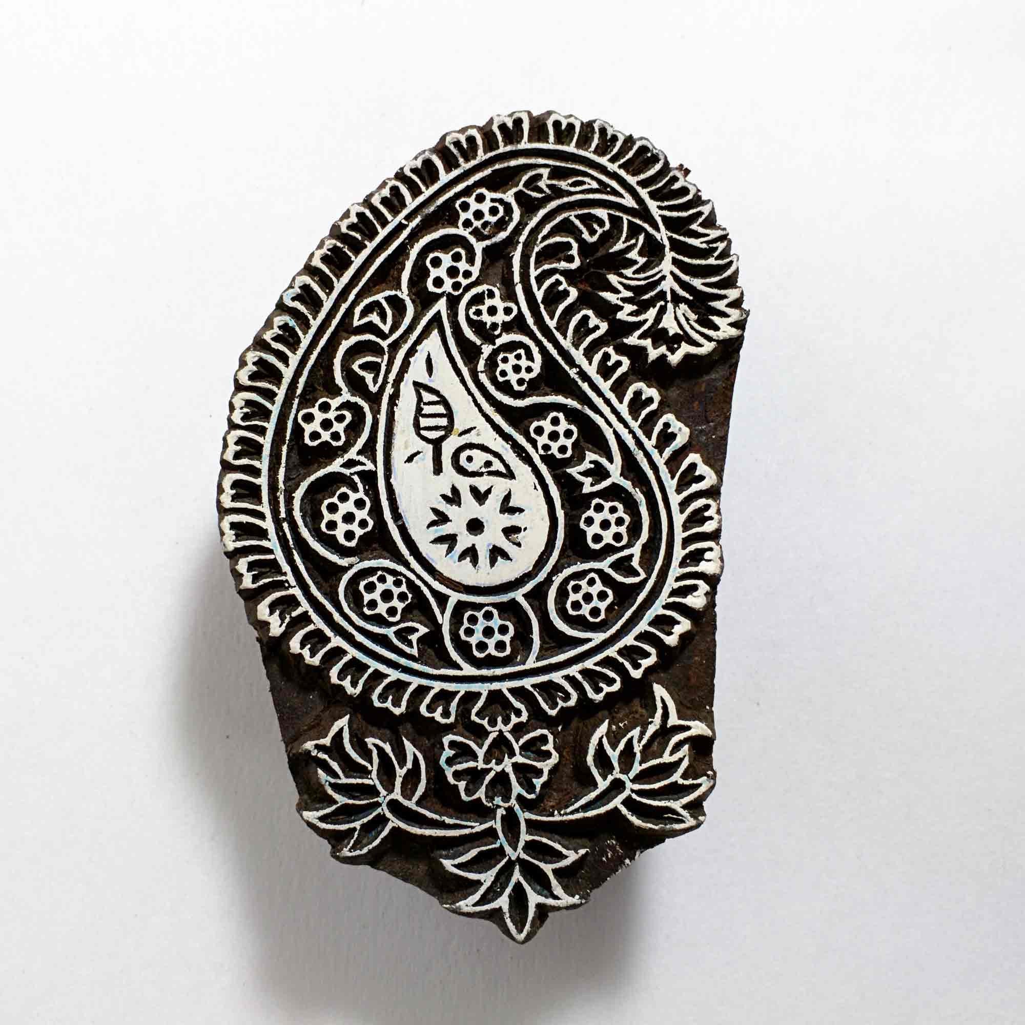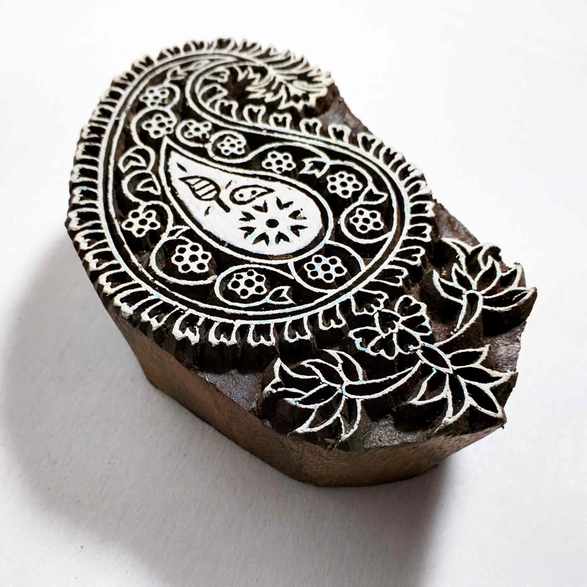 This wood block is hand carved by an award winning master carver in India. The block is made using rosewood- the most expensive and the most durable wood used for stamp making.