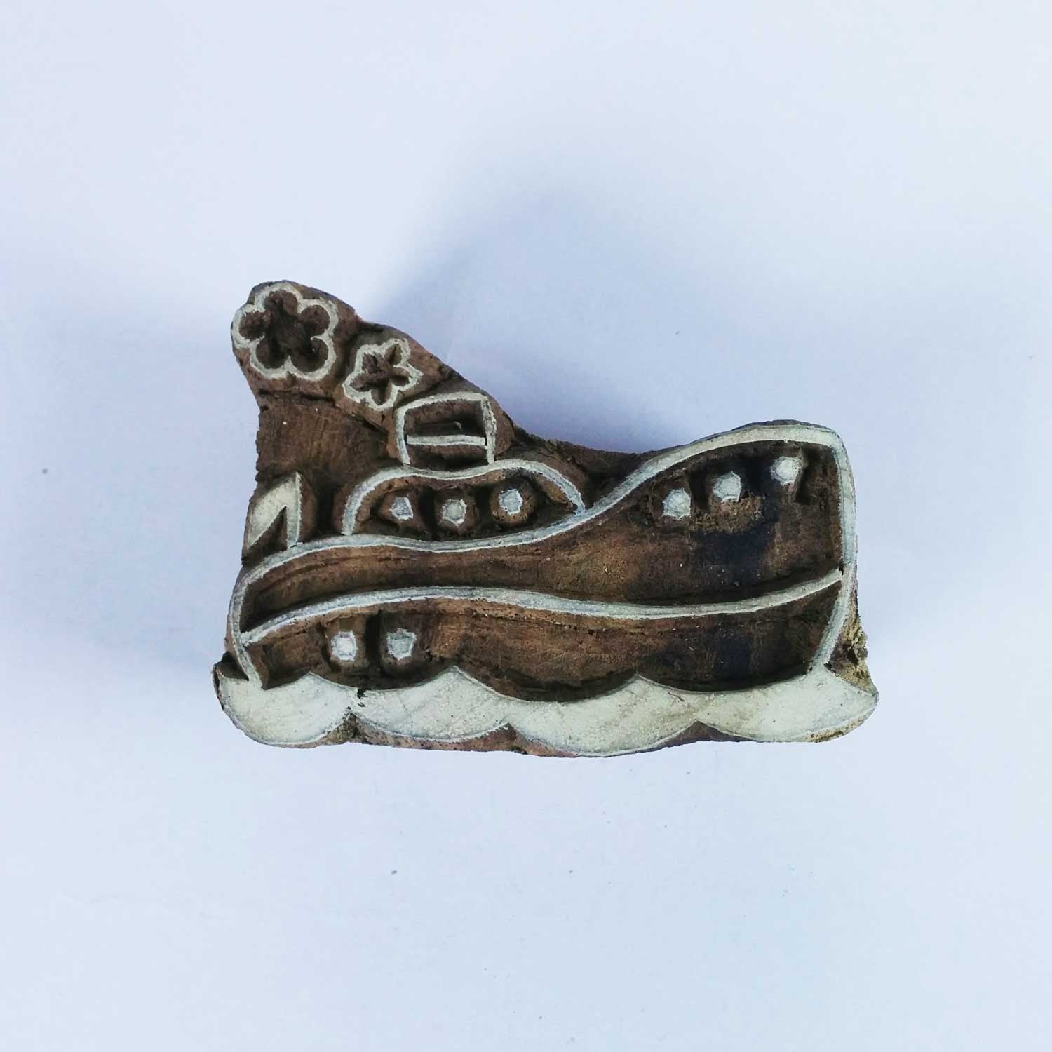 Kawaii Ship wood block printing stamp - with intricate carving.