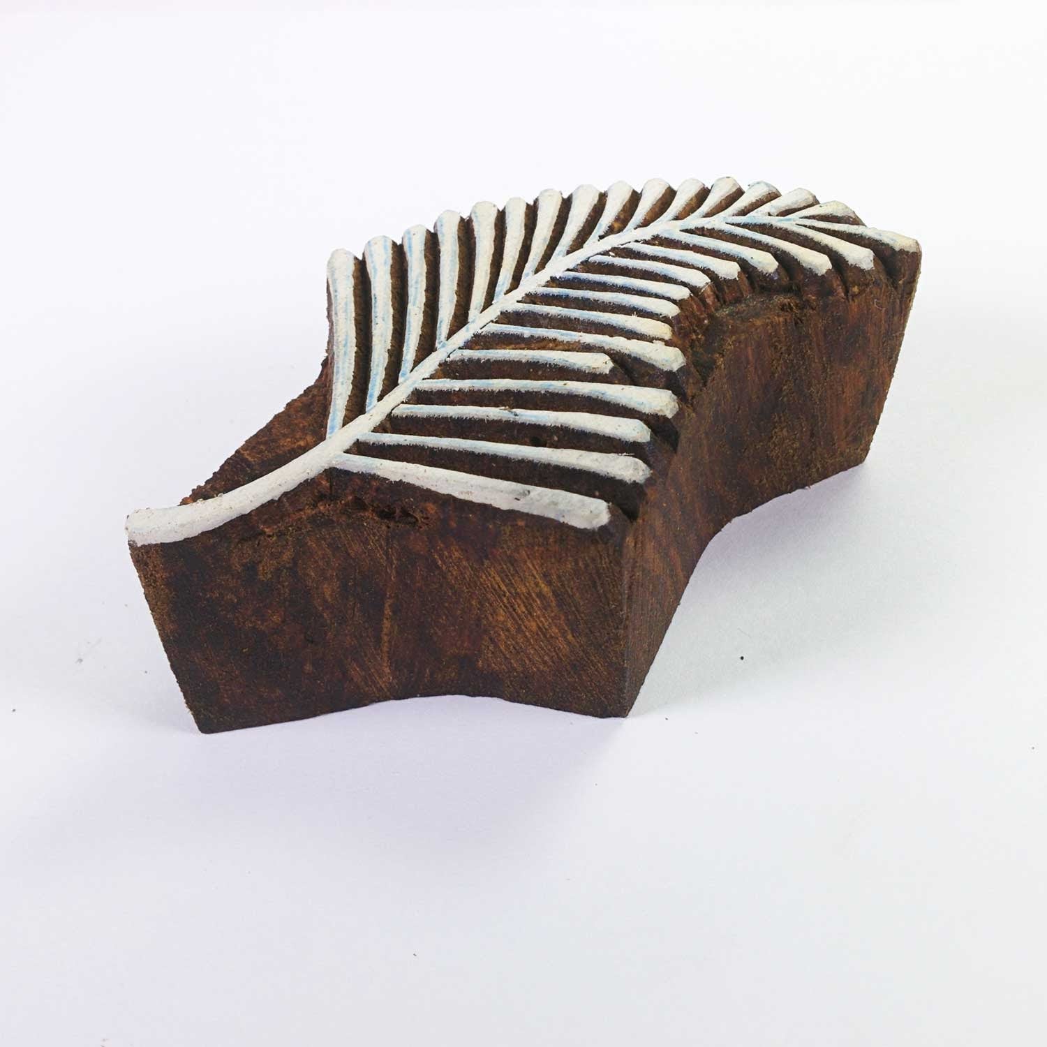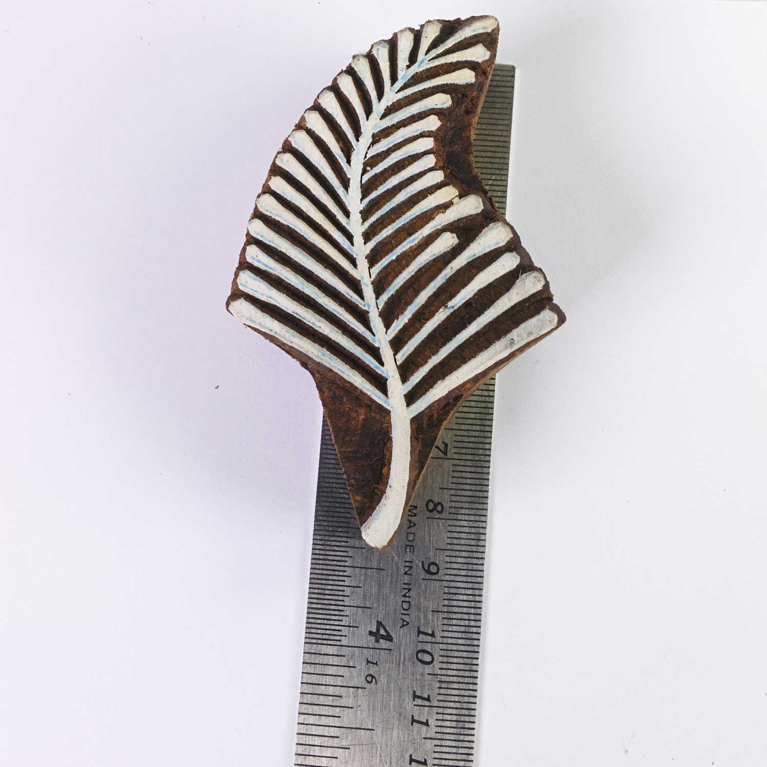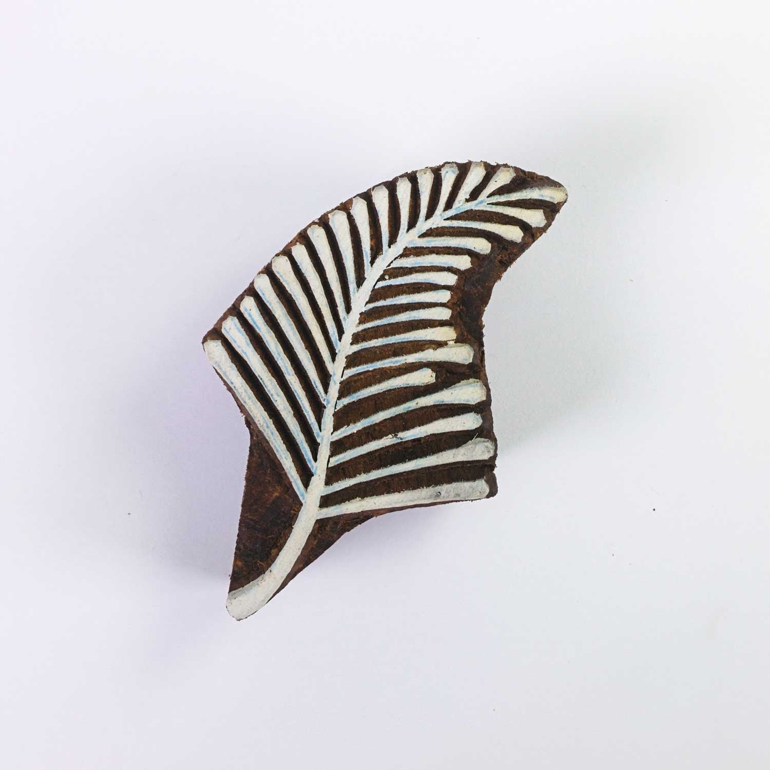 Wood block printing stamp - leaf with intricate carving.