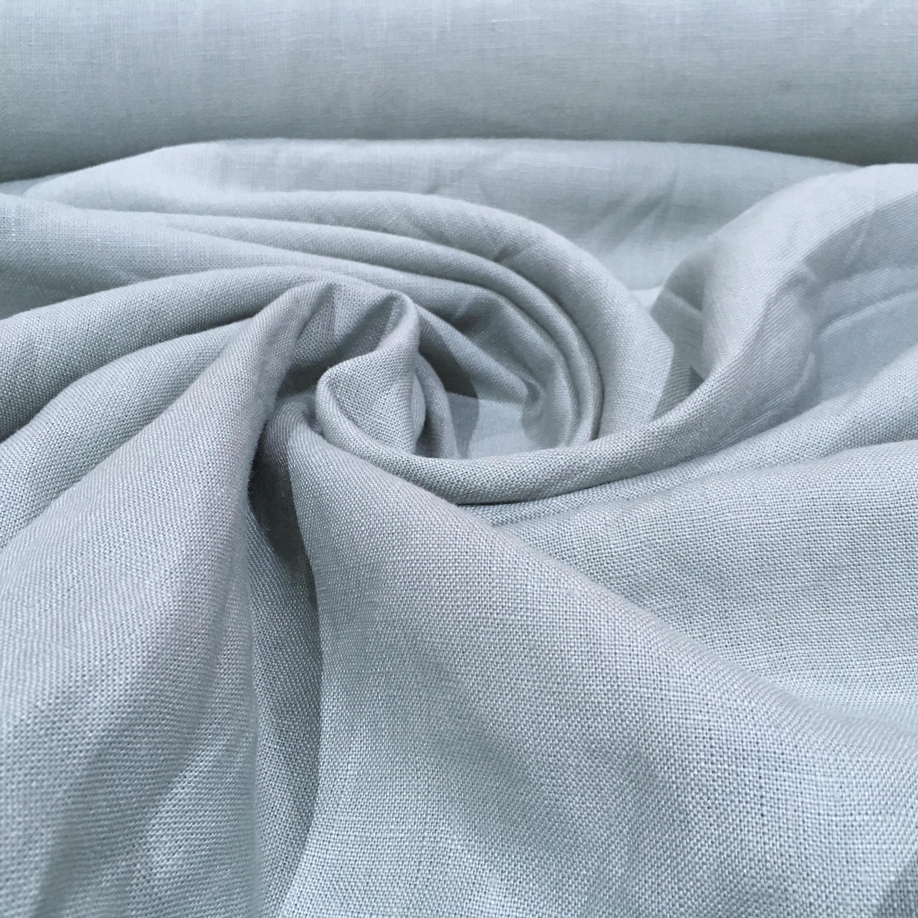 Solid color linen in sky blue. This linen gives a nice drape and it is best suited for curtains, bags, home linen etc.
