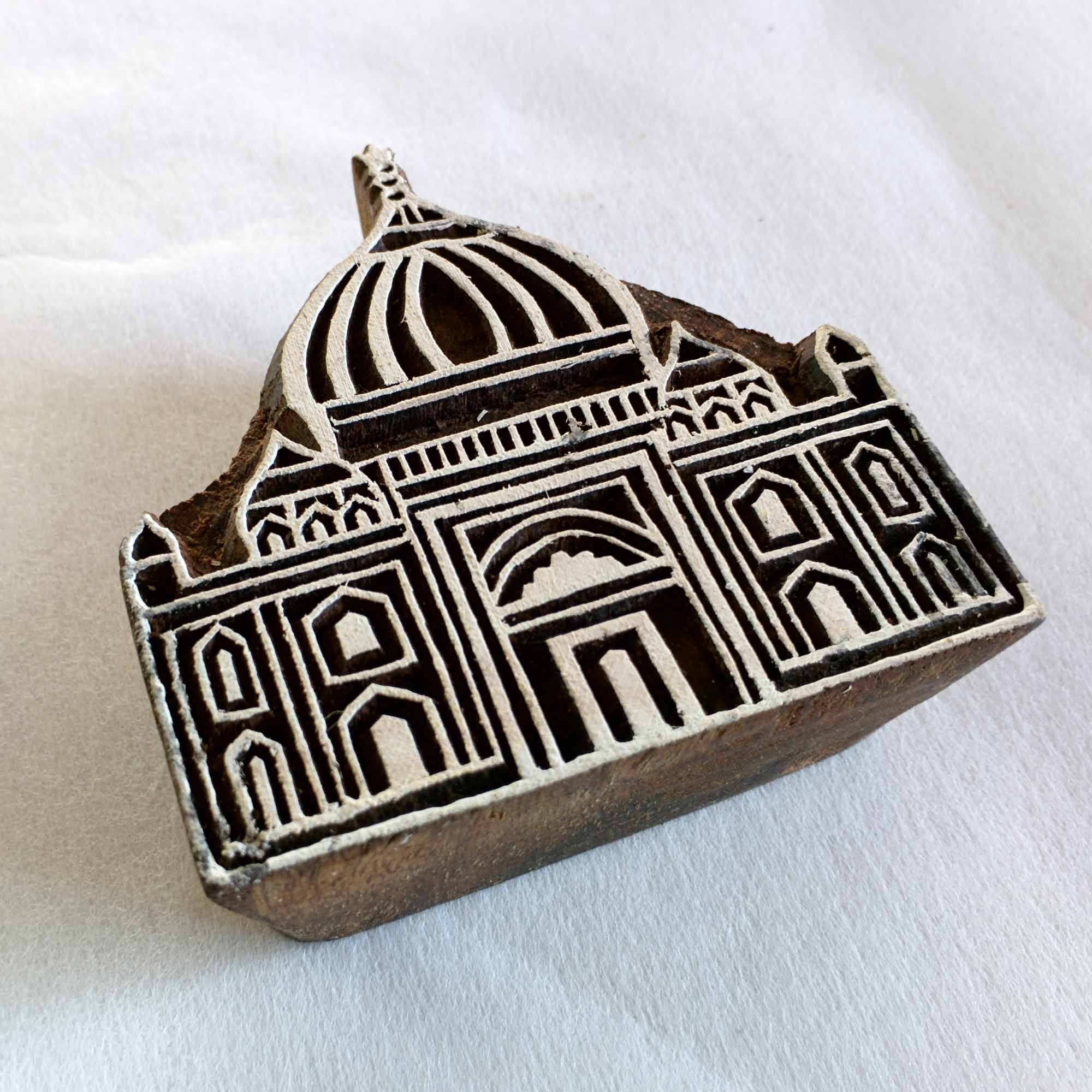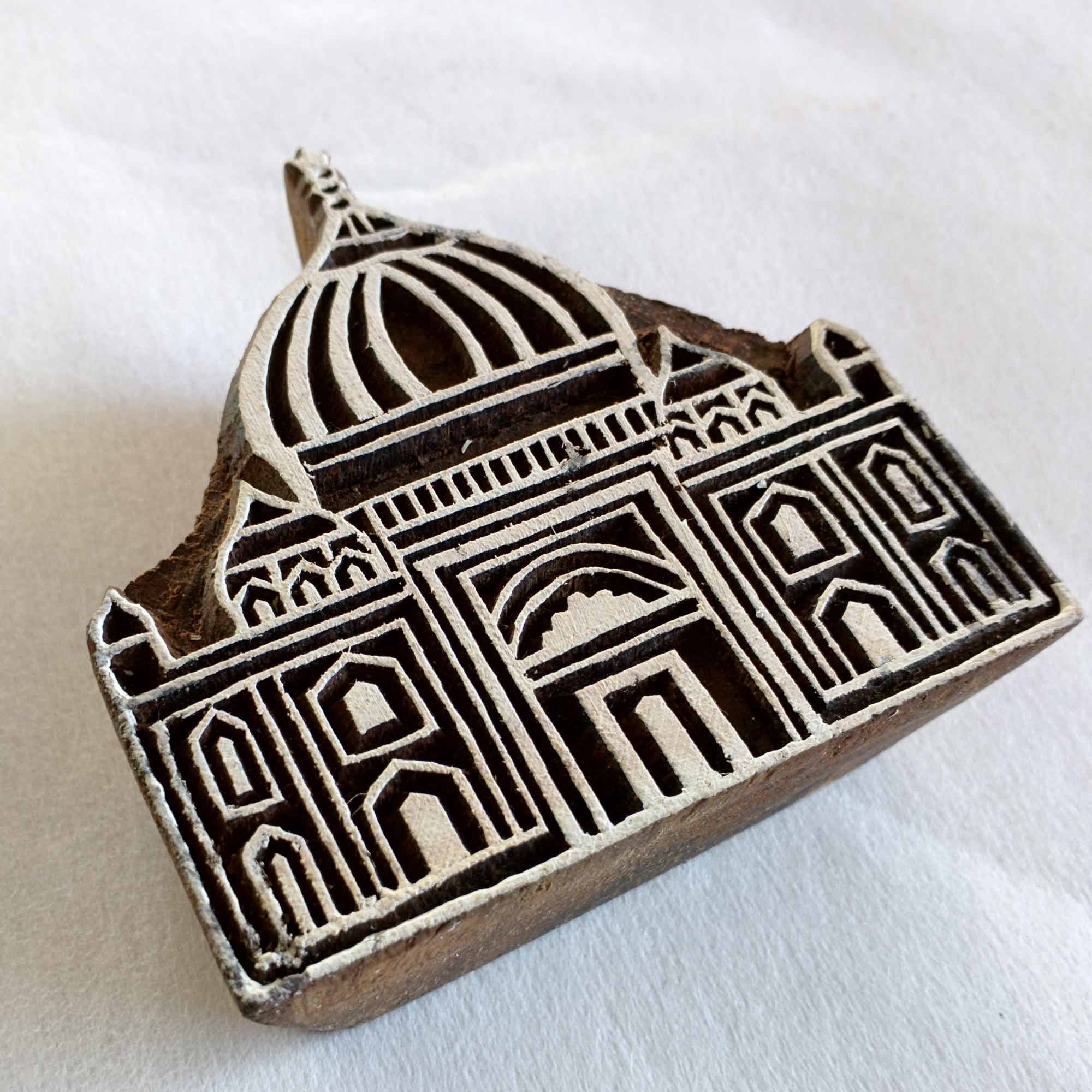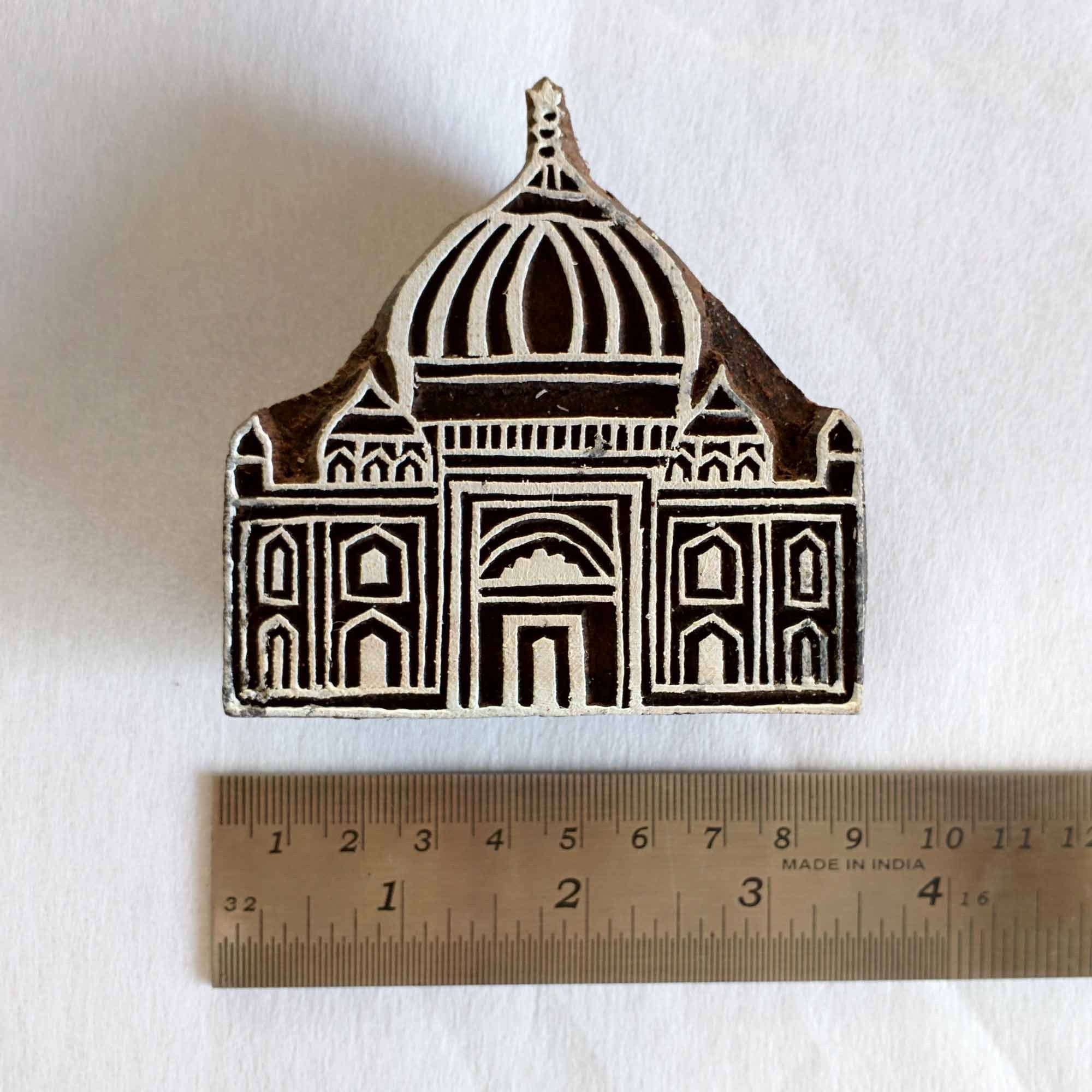 Wood block printing stamp - Tajmahal with intricate carving.