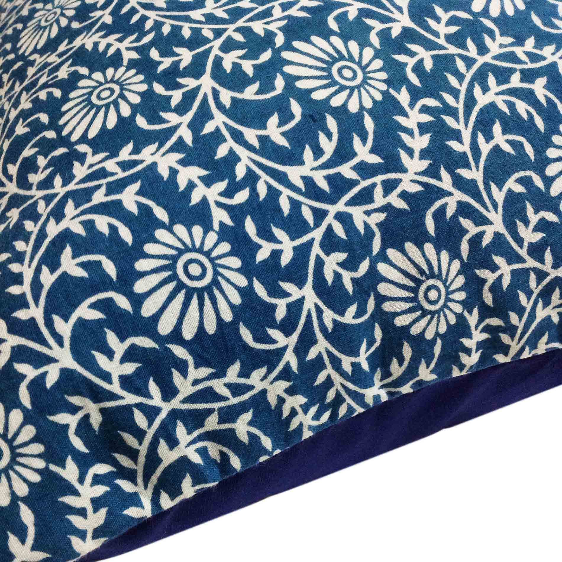 Teal and White printed cotton pillow cover. These are made using 100% cotton fabric. Each cushion cover has good quality lining and is interlocked to avoid any fraying wash after wash.