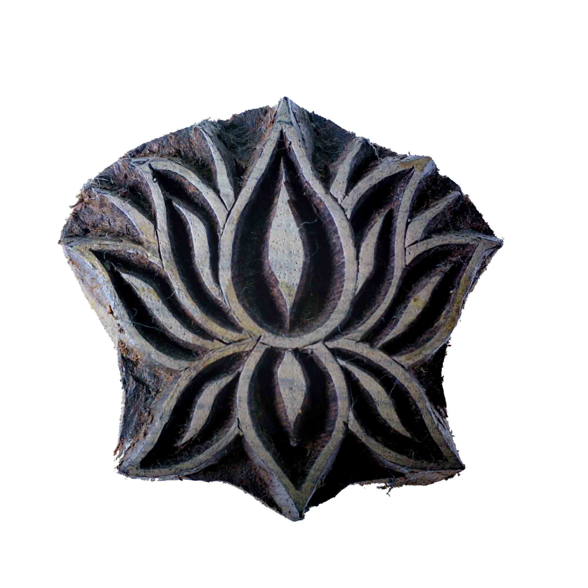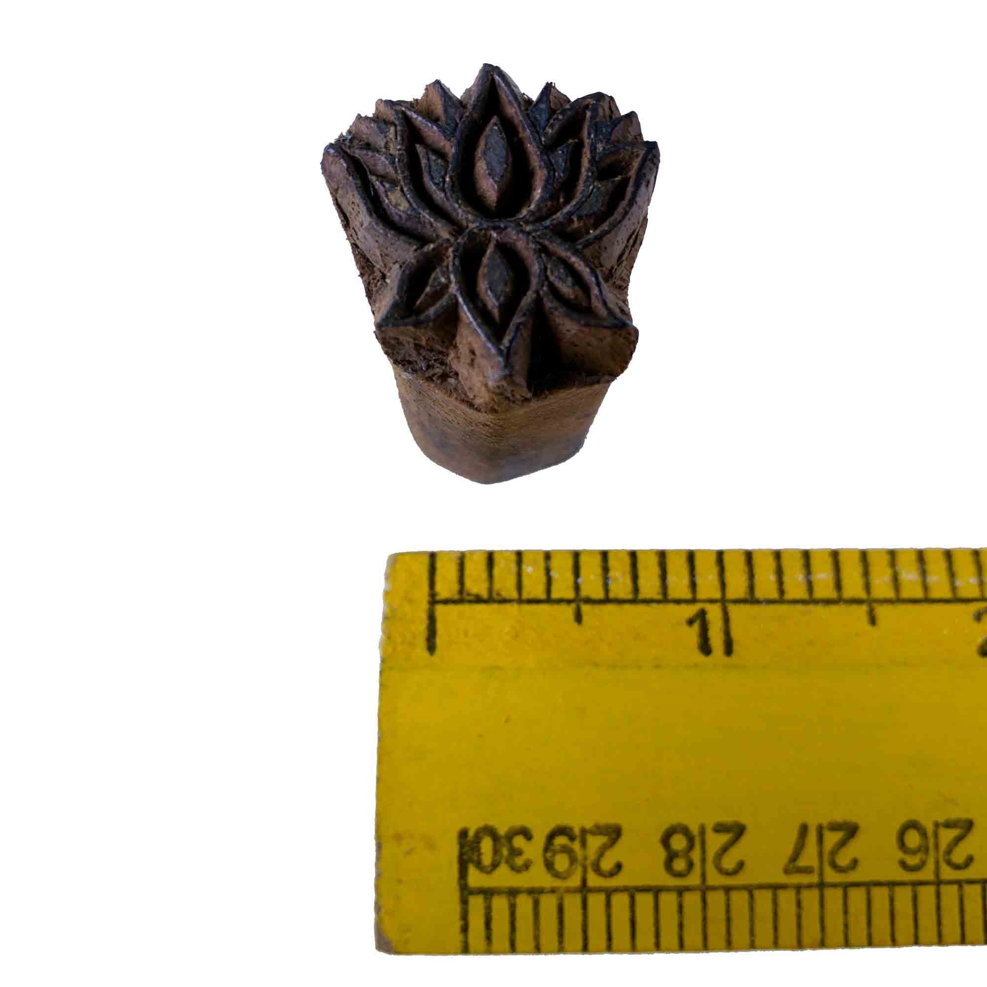 Wood block printing stamp - tiny lotus flower with intricate carving.