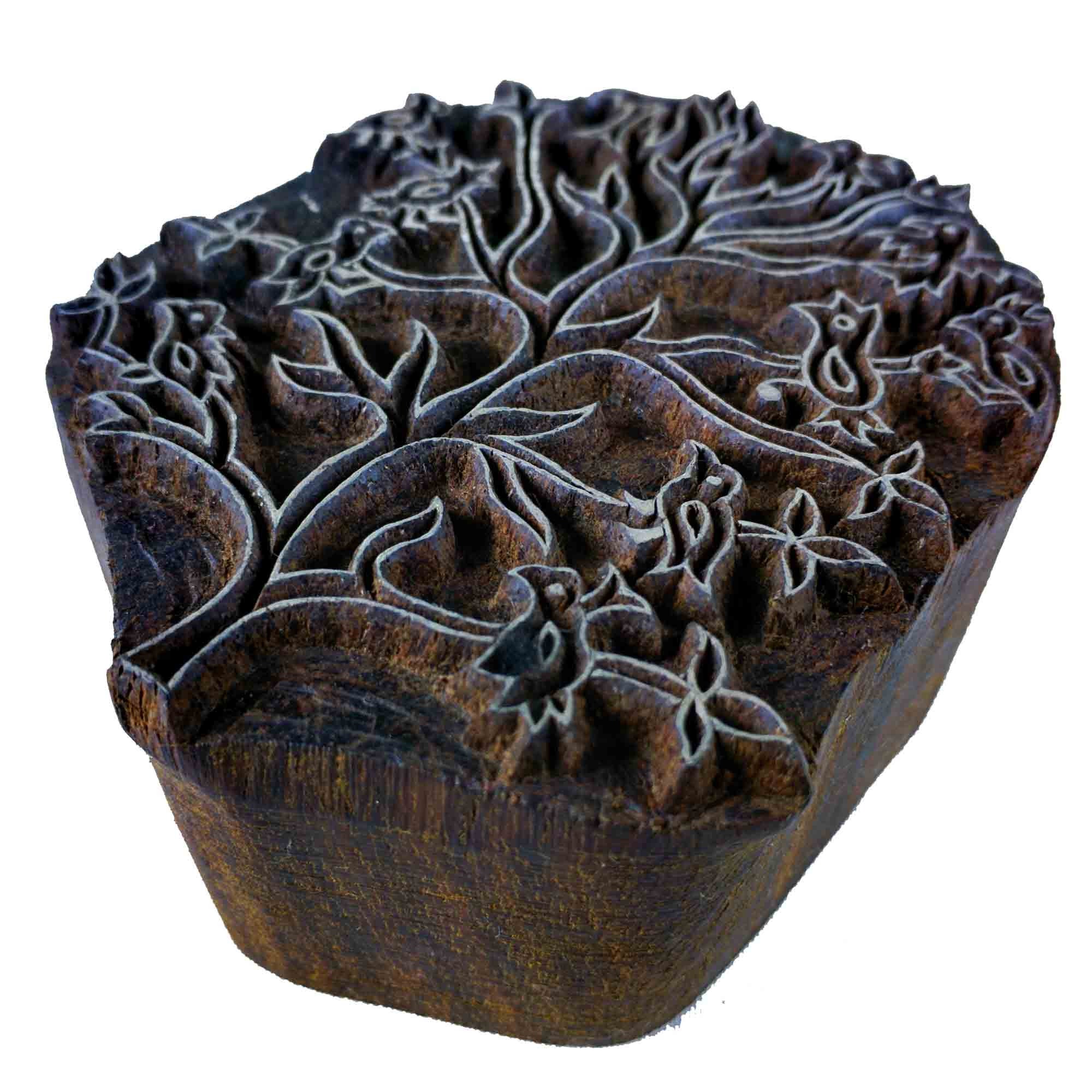 This wood block is hand carved by an award winning master carver in India. The block is made using rosewood- the most expensive and the most durable wood used for stamp making.
