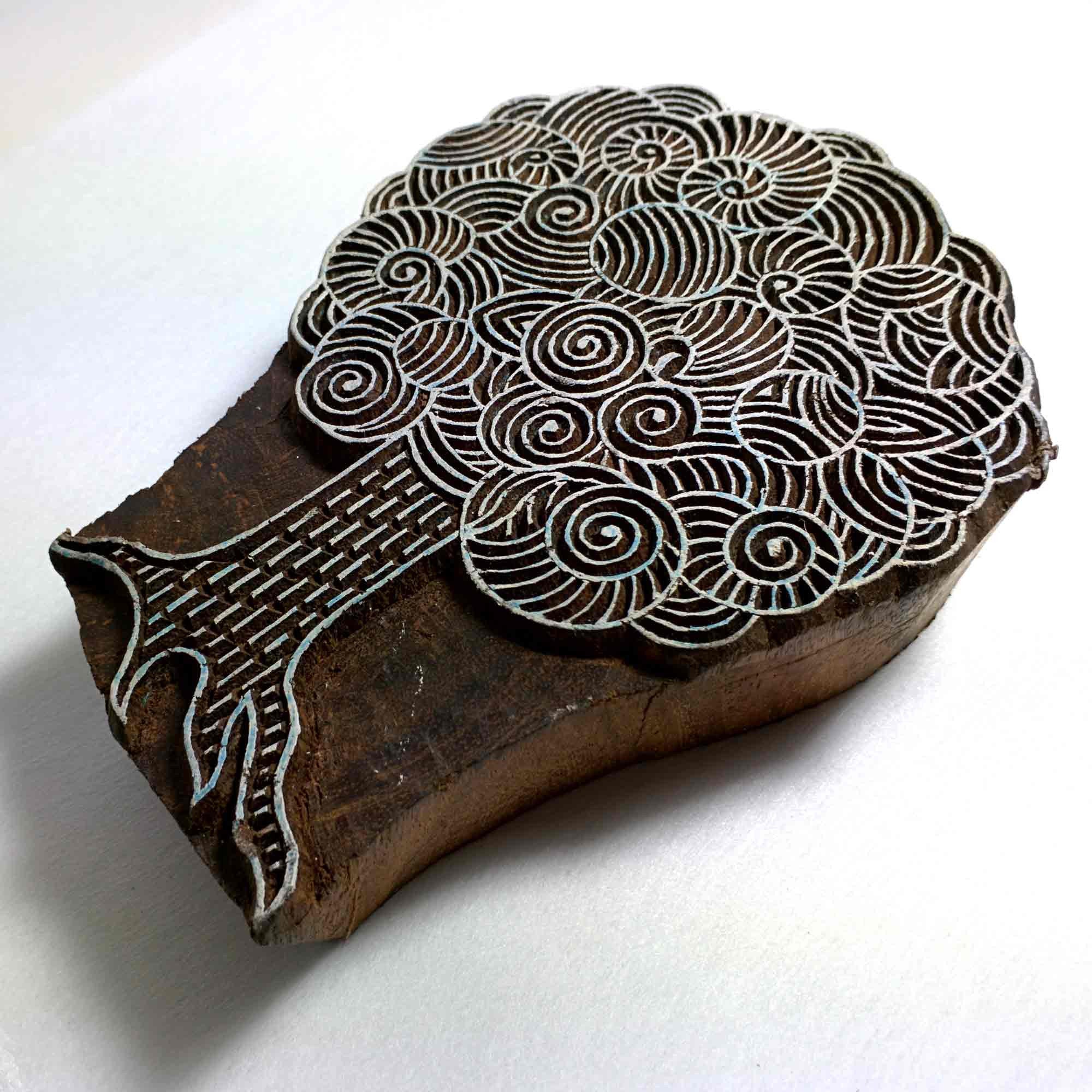 This wood block is hand carved by an award winning master carver in India. The block is made using rosewood- the most expensive and the most durable wood used for stamp making.