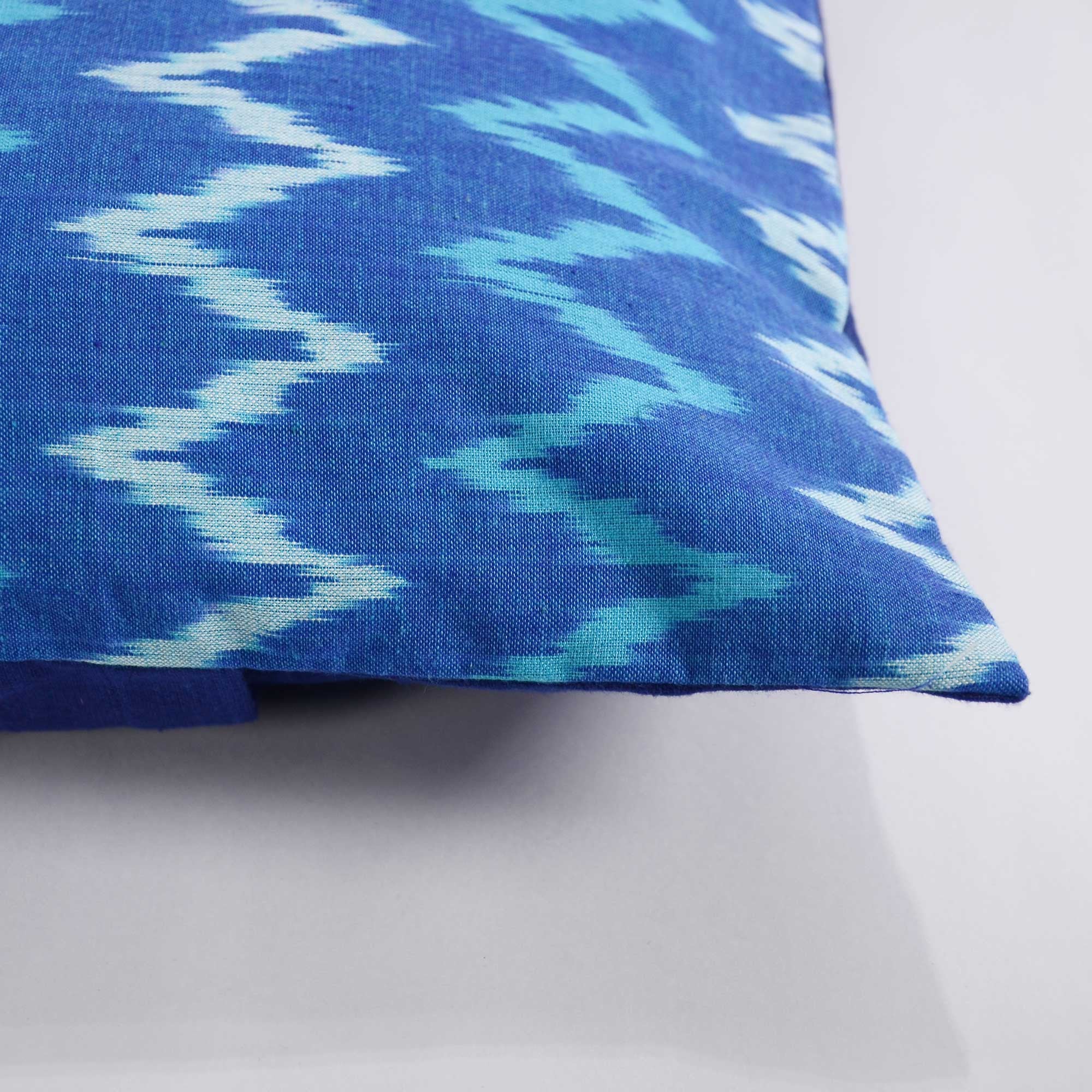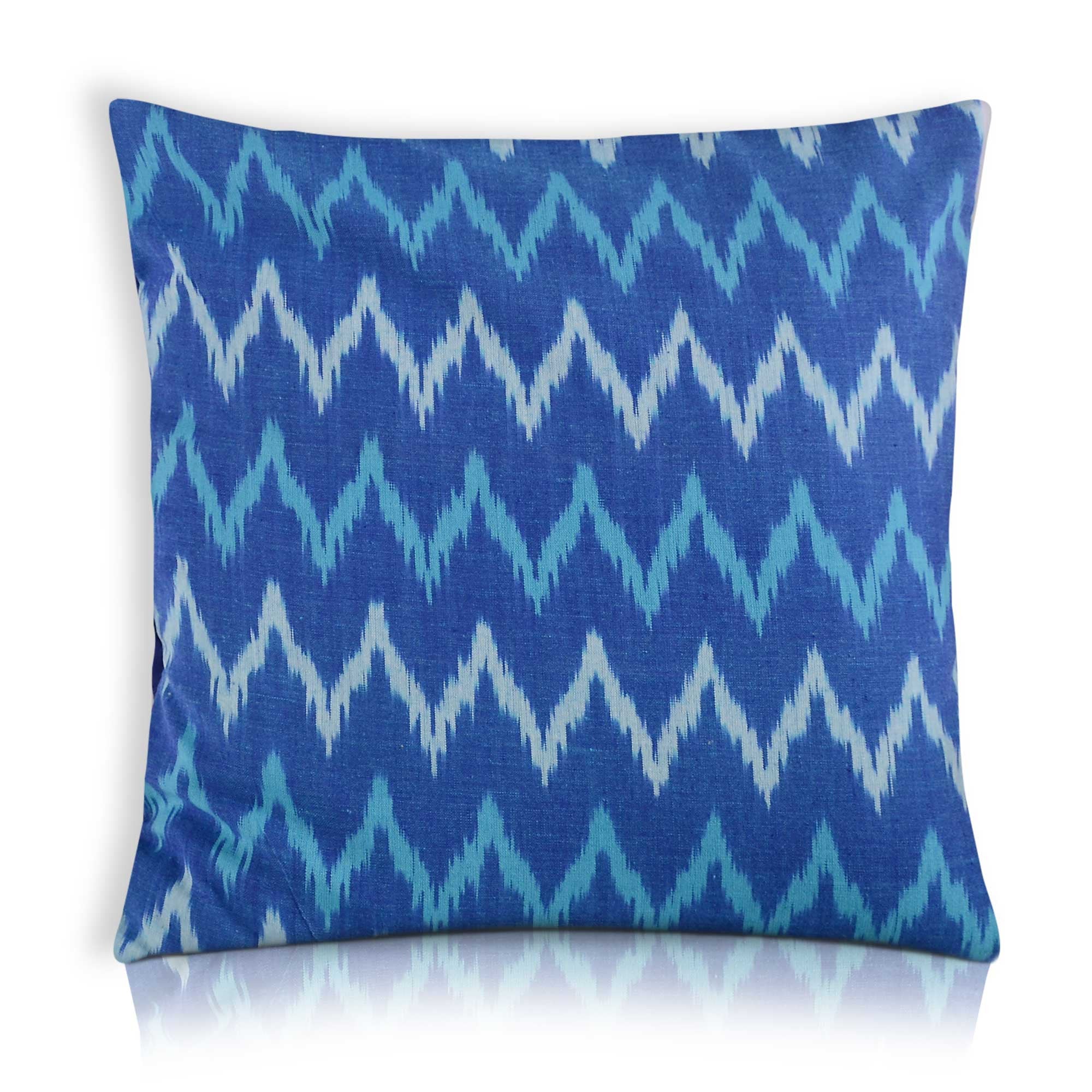 Turquoise Ikat cotton pillow cover. 100% cotton, fabric has been used to make this pillow cover. The pillow cover has a soft cotton lining that is well interlocked to avoid any fraying use-after-use.