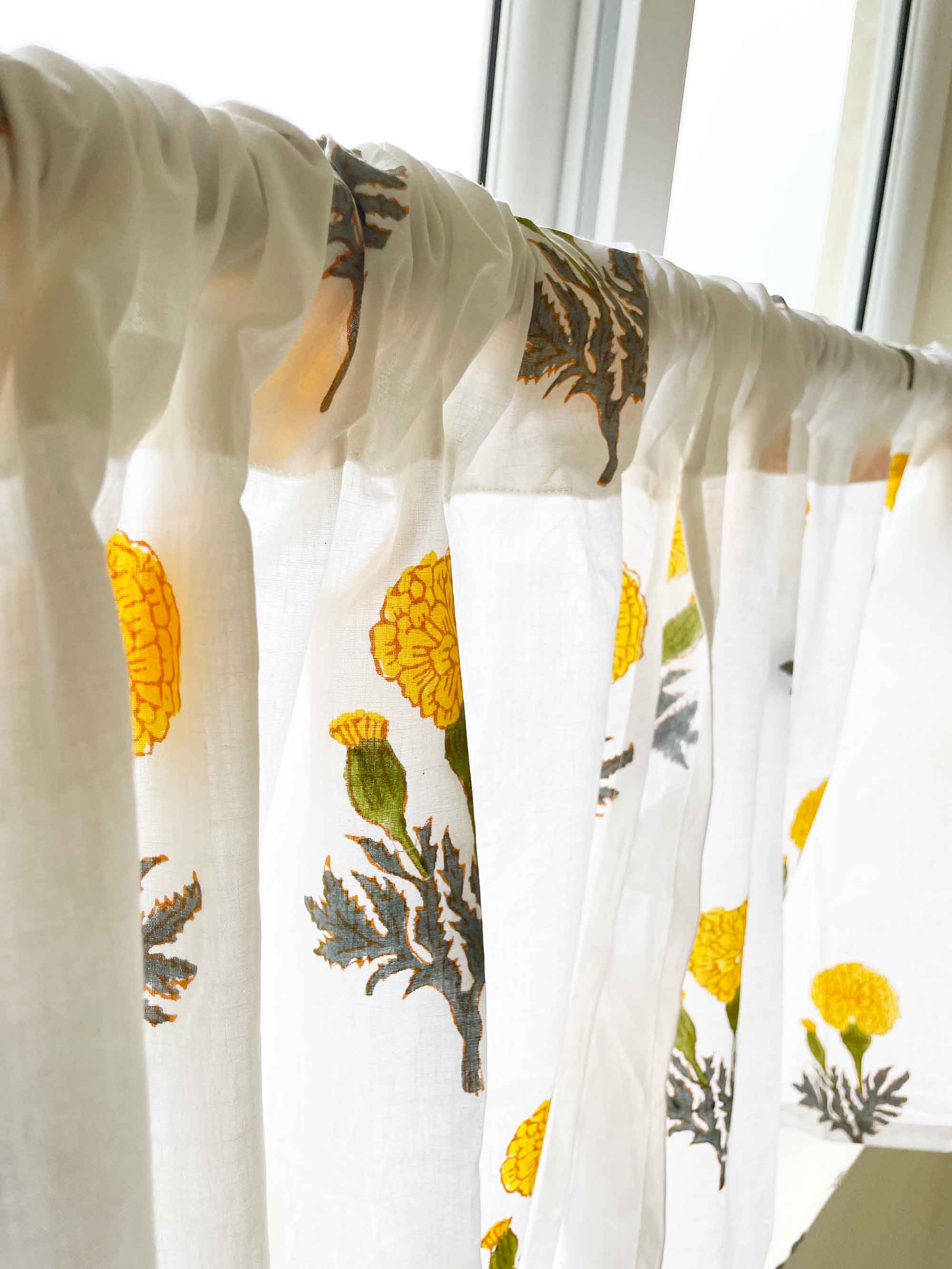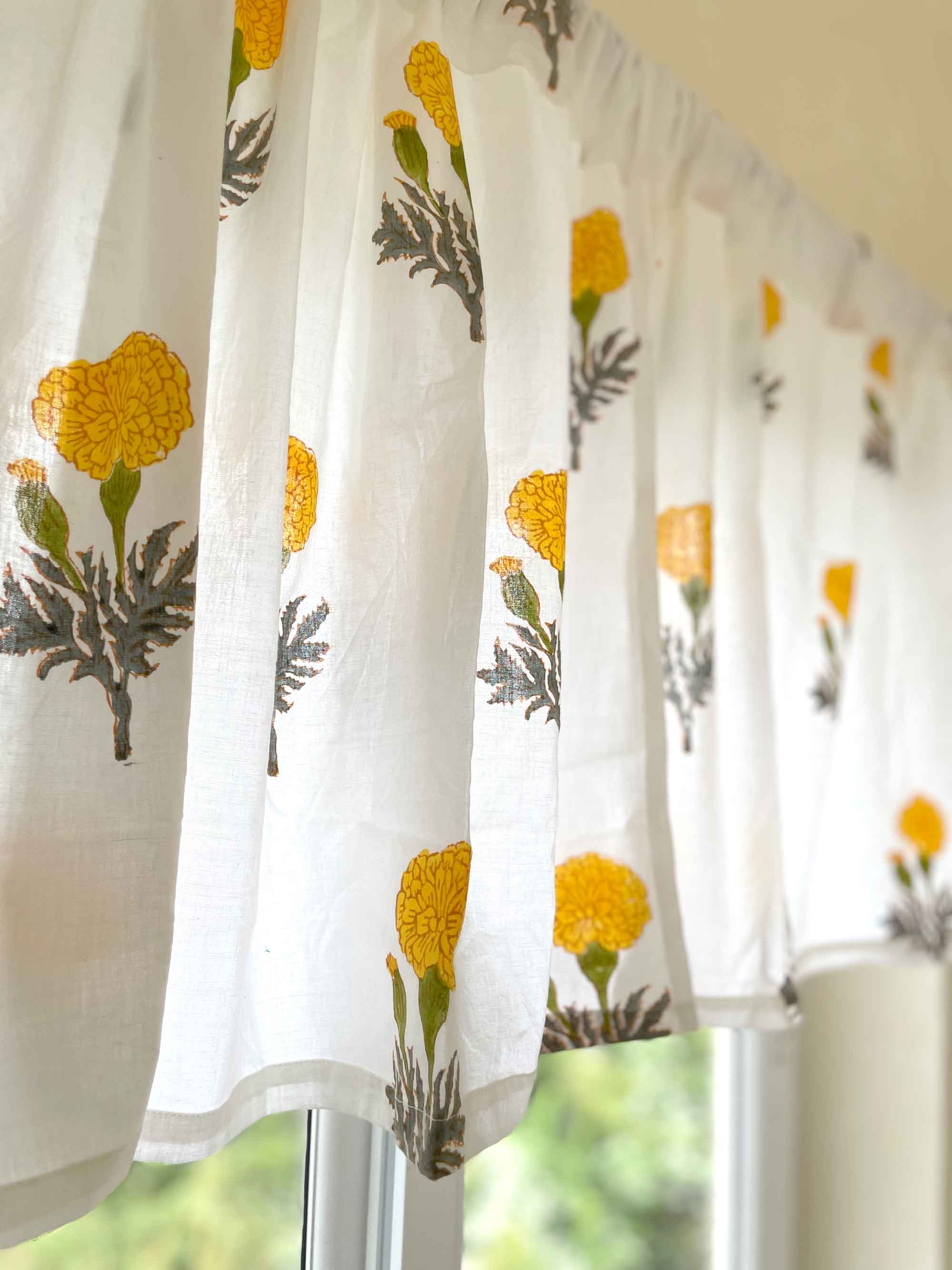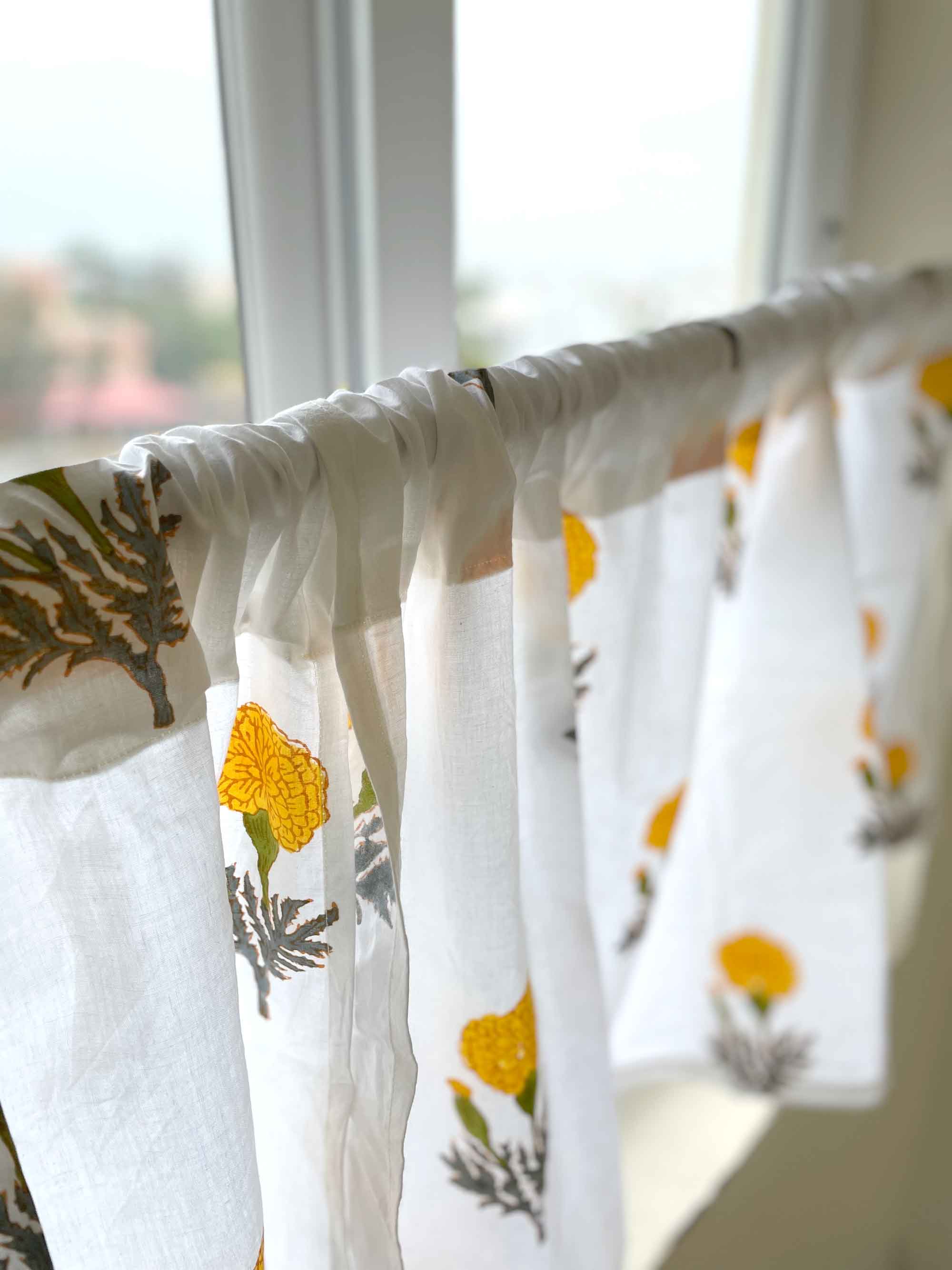 Yellow Marigold Floral Cafe Curtains, 2 Panels